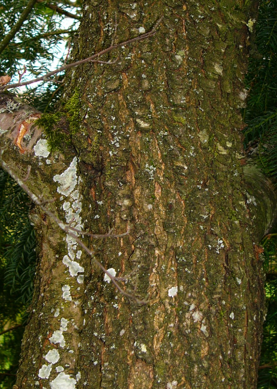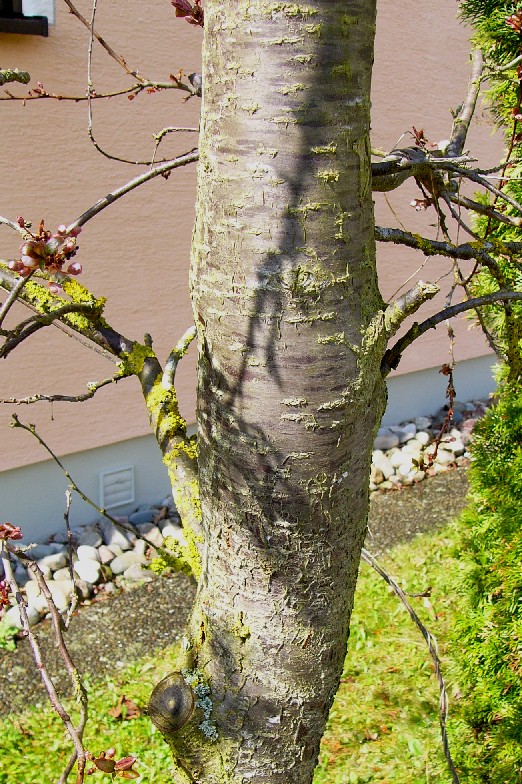 Borke ohne Lentizellen (im Gegensatz zu Kirschen)