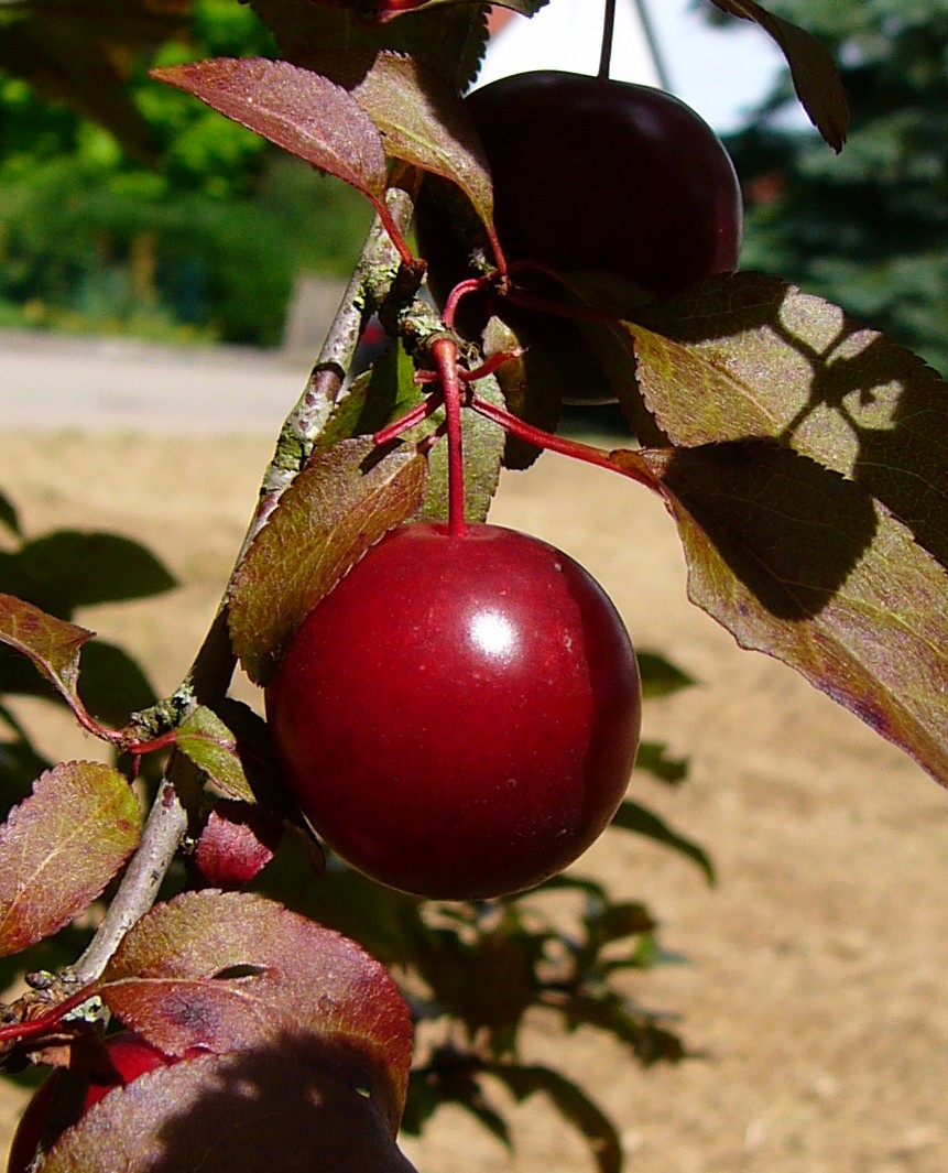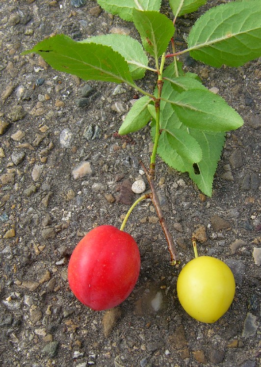 in: Prunus domestica ist ein Bastard Prunus cerasifera x Prunus spinosa.