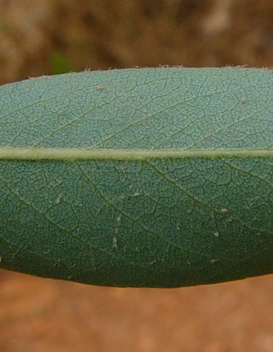 | Früchte 3 cm im Durchmesser Einige Blätter oval, andere lanzettlich Blattoberseite anfangs filzig, Blätter bis 3 cm lang gestielt Blattunterseite spärlich papillös > 1