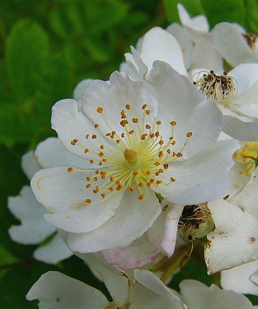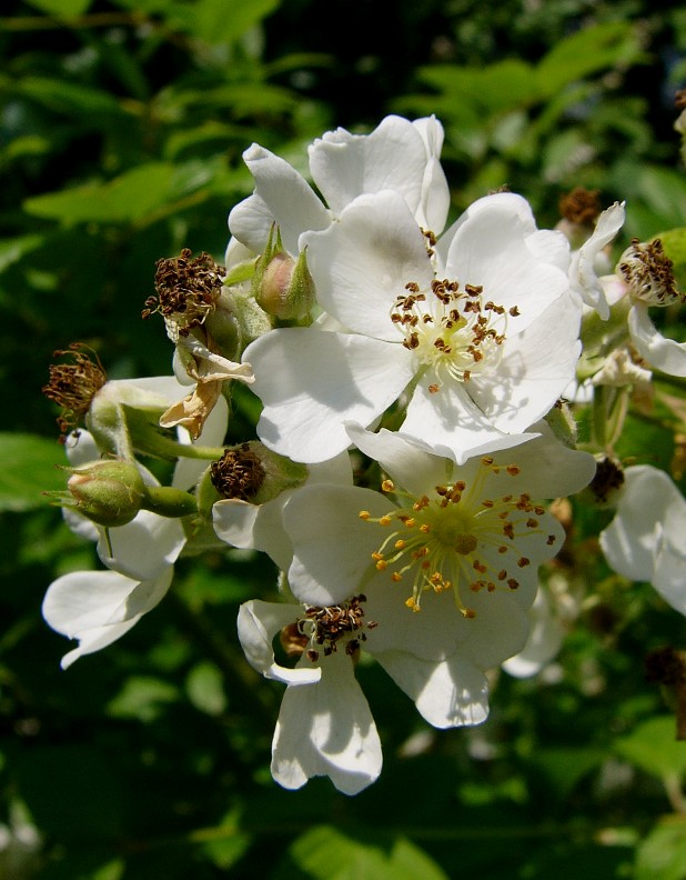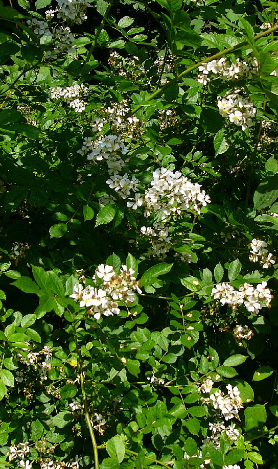 Rosa - ohne Borsten zwischen den Stacheln, Blütenstand 10 - 20- blütig, Blüten mit Griffelsäule