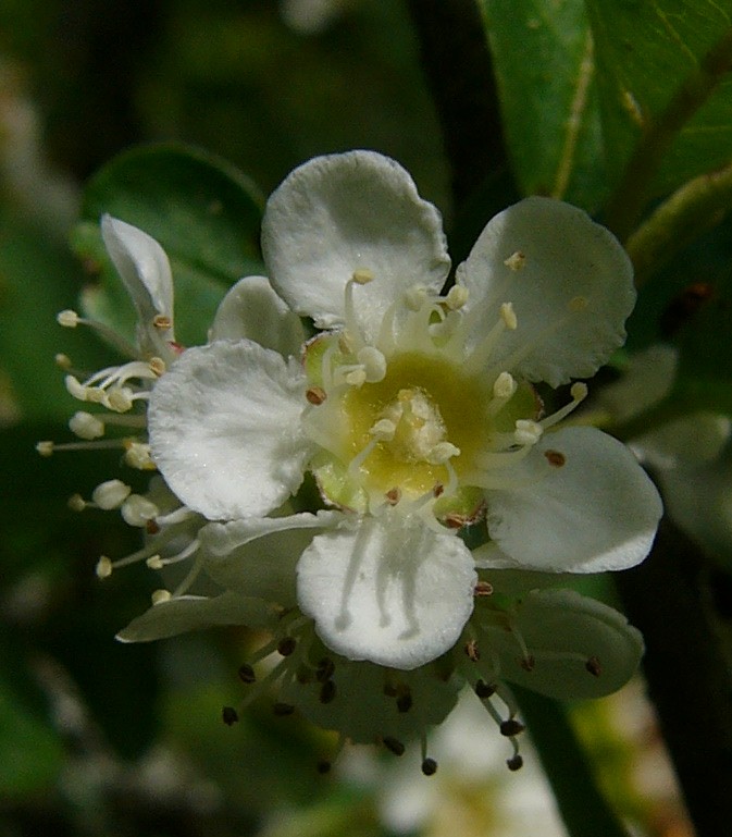 Blüten weiß, meist < 1 cm im Durchmesser mit 5 Kronblättern, ca. 25 Staubblätter