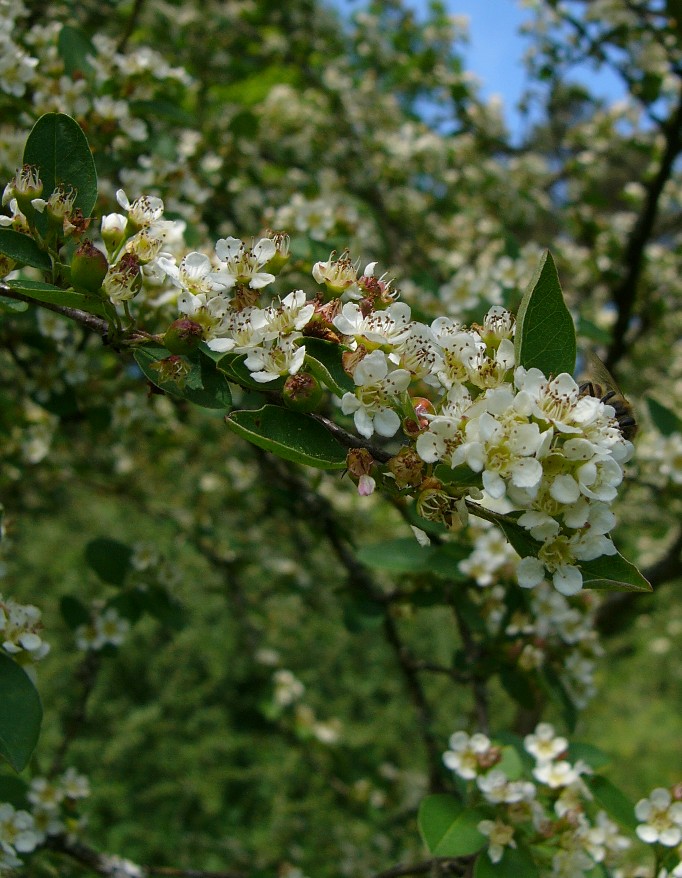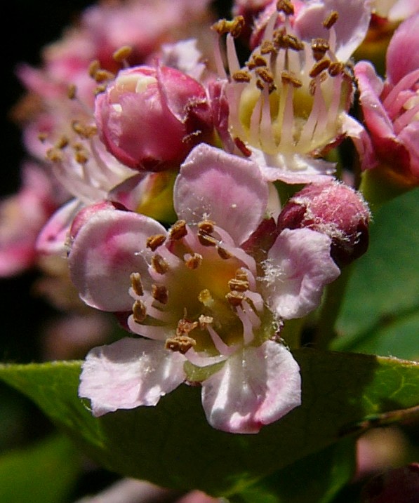 weißen oder rosa Blüten, ungeteilten Blättern, Zweige nicht dornig, Blüten
