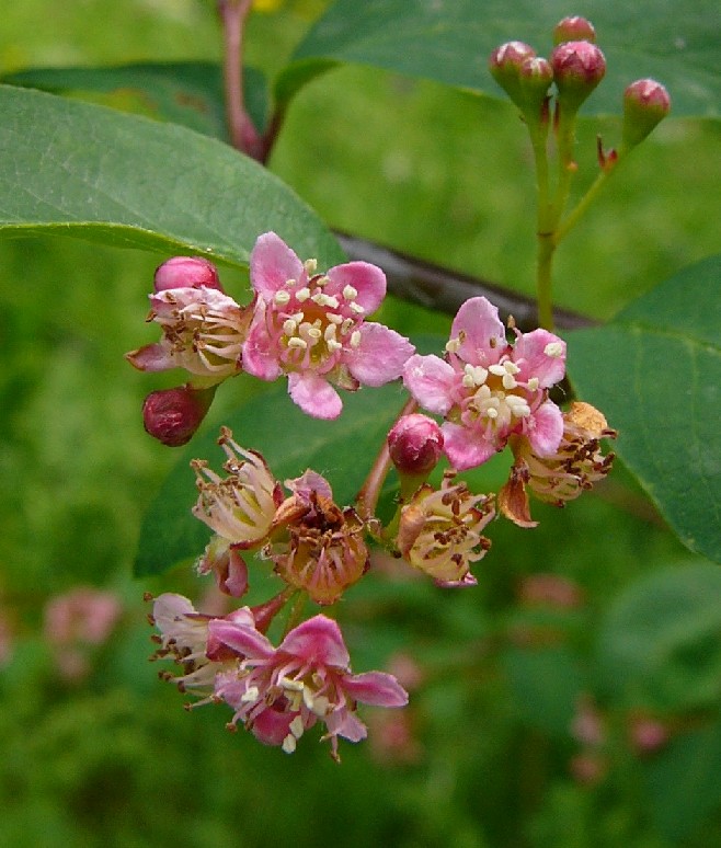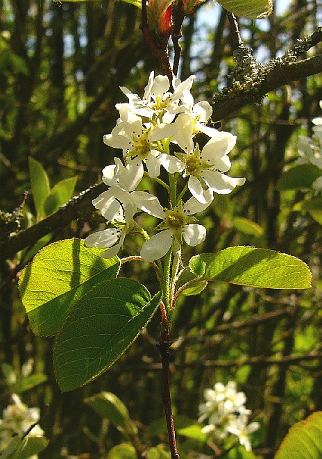 Verholzte Rosengewächse mit weißen oder roten Blüten und ungeteilten Blättern