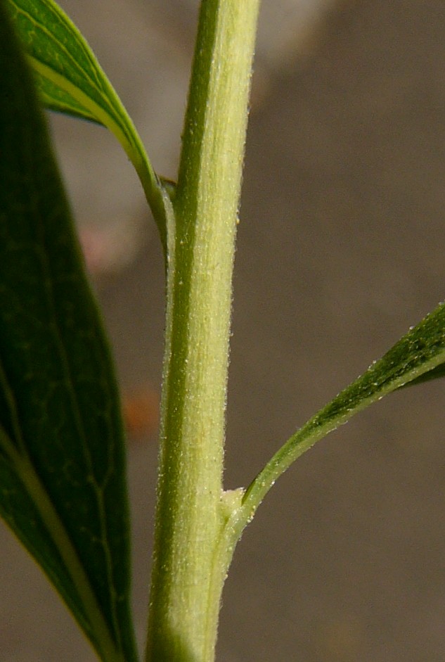 Blätter am Stängel herablaufend, dadurch wirkt der Stängel kantig, Triebe behaart