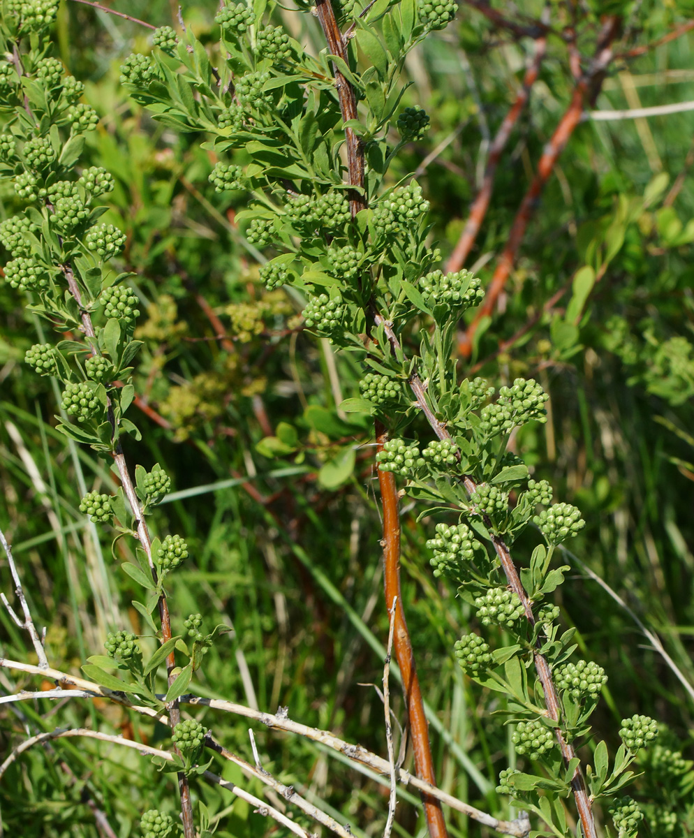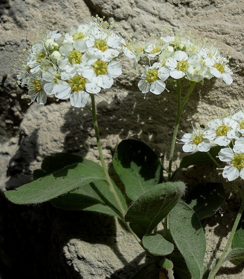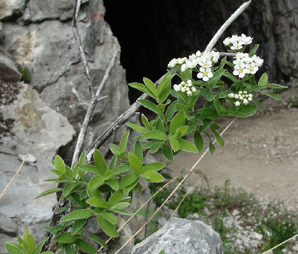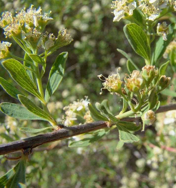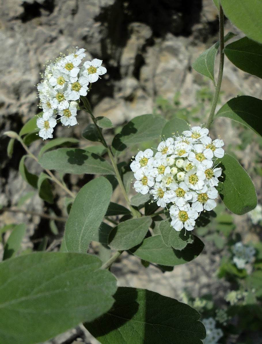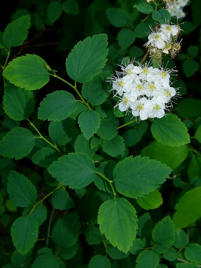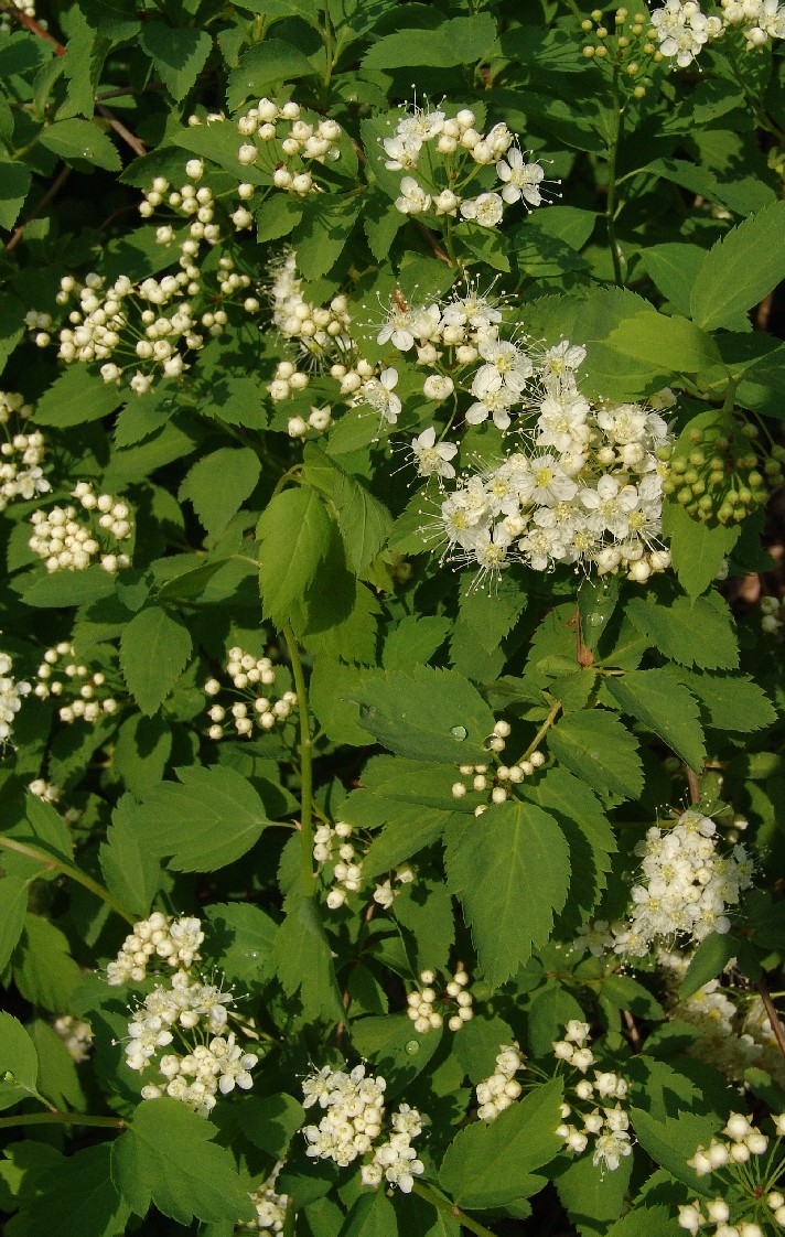 Spiraea - Blüten weiß, in seitlichen, gestielten Trugdolden
