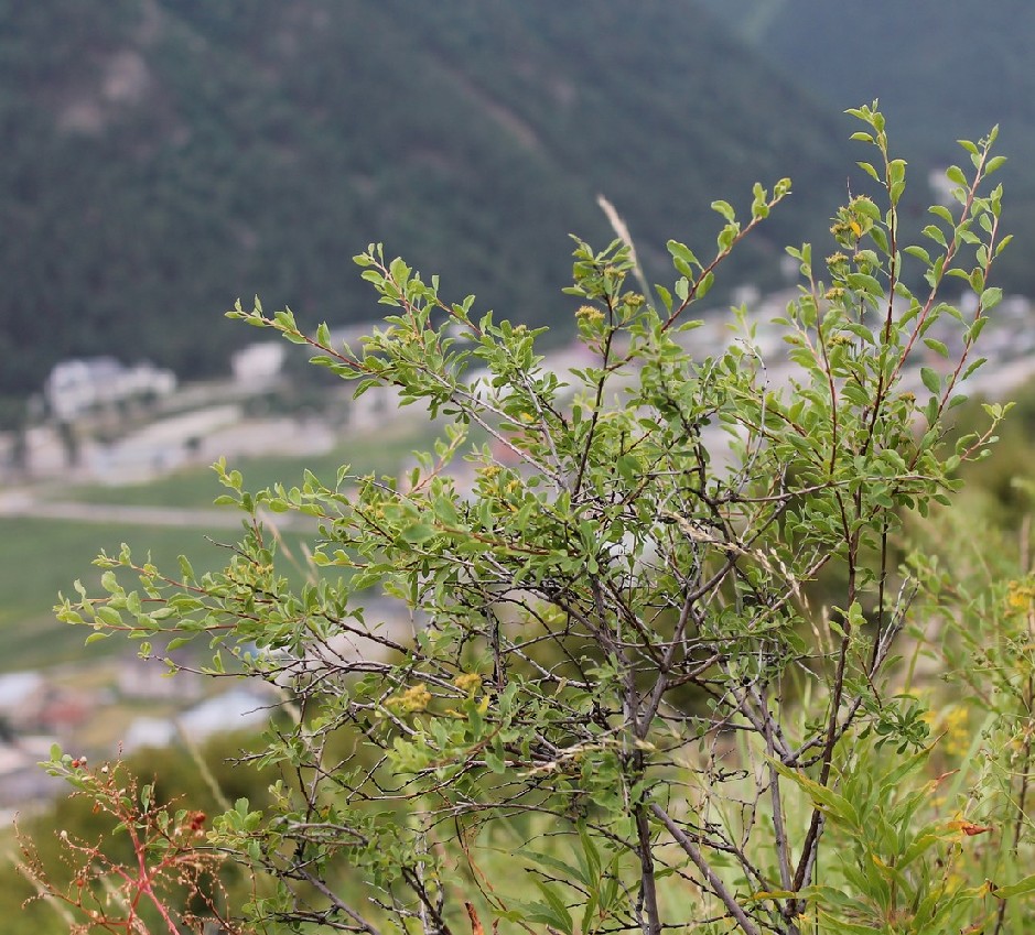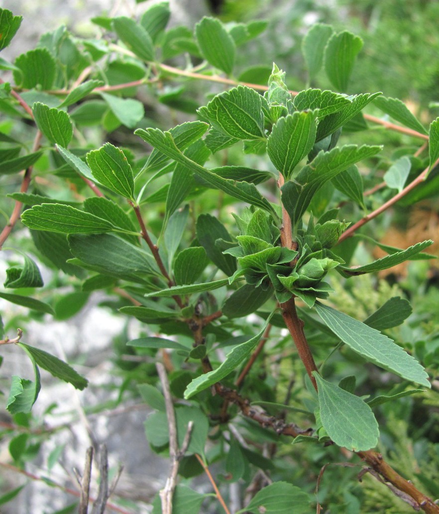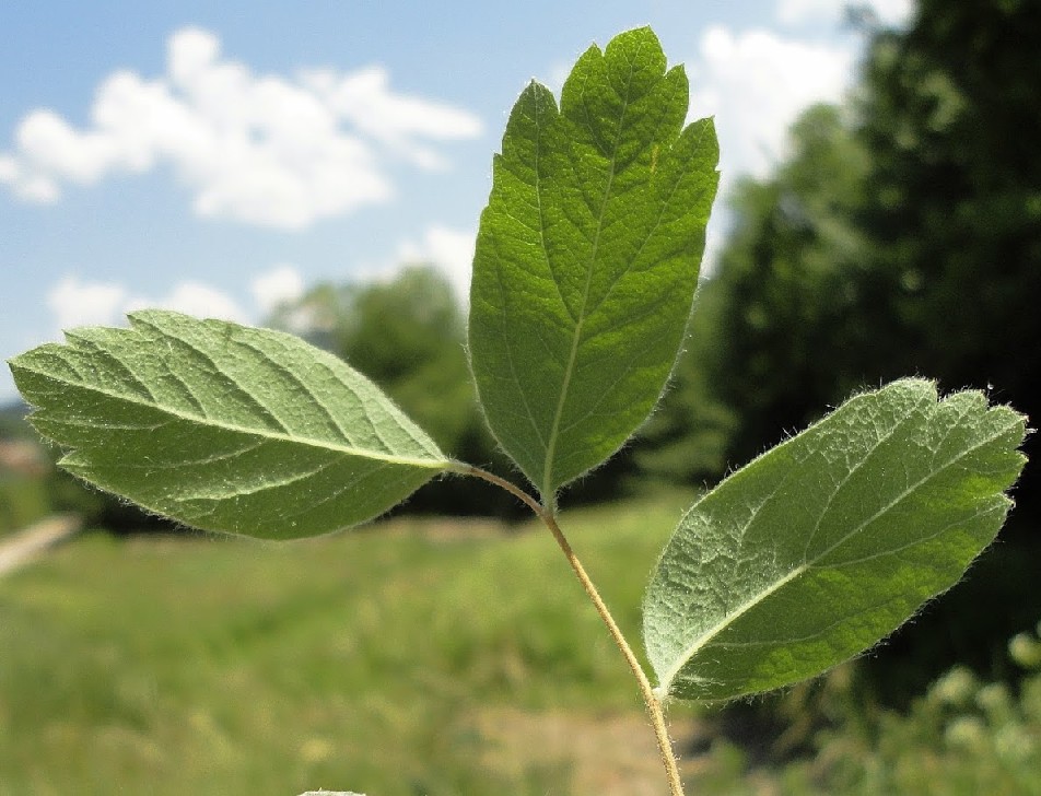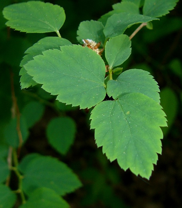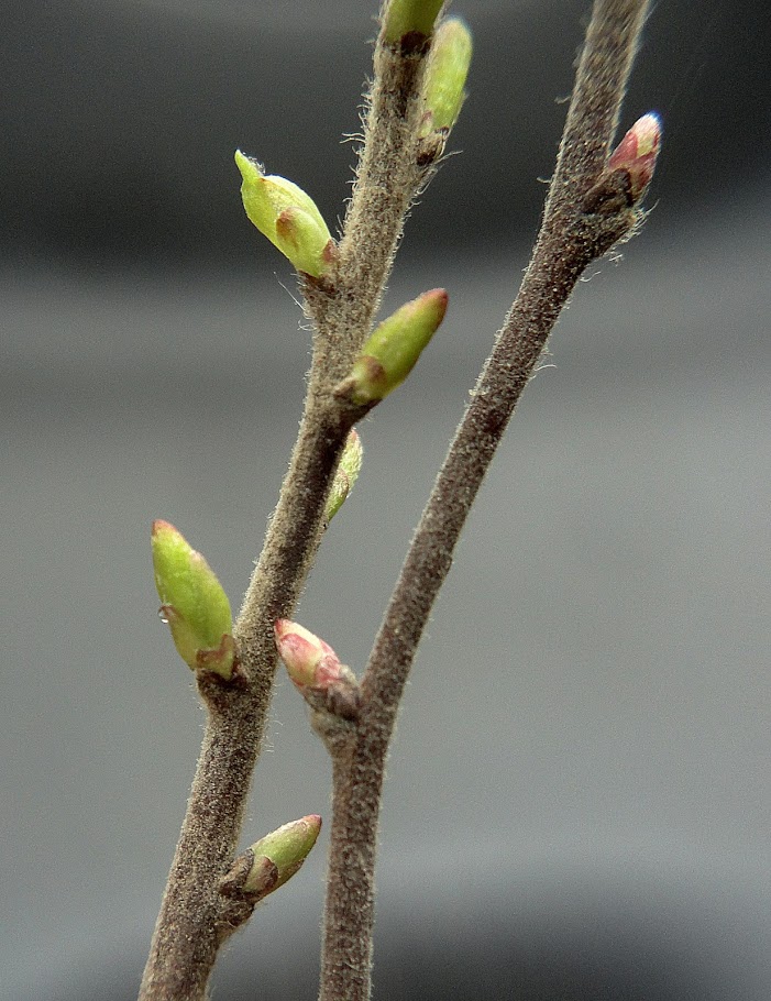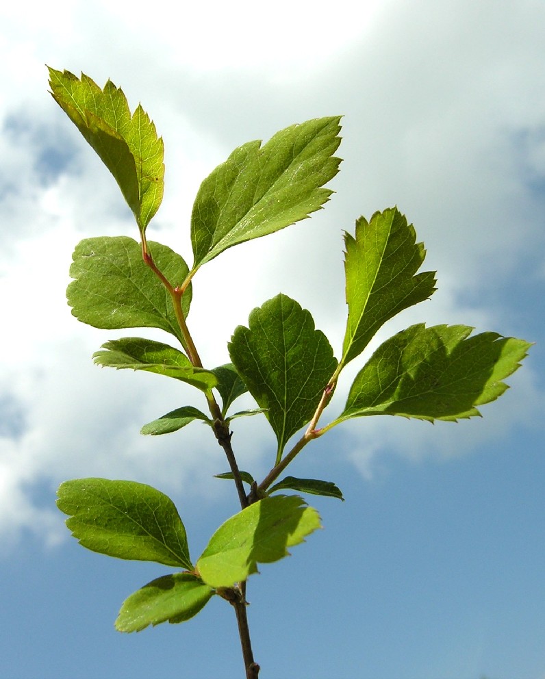 Zweige rund, nicht gestreift Blätter 3 - 5 cm lang, eiförmig, netznervig, gestielt, gesägt