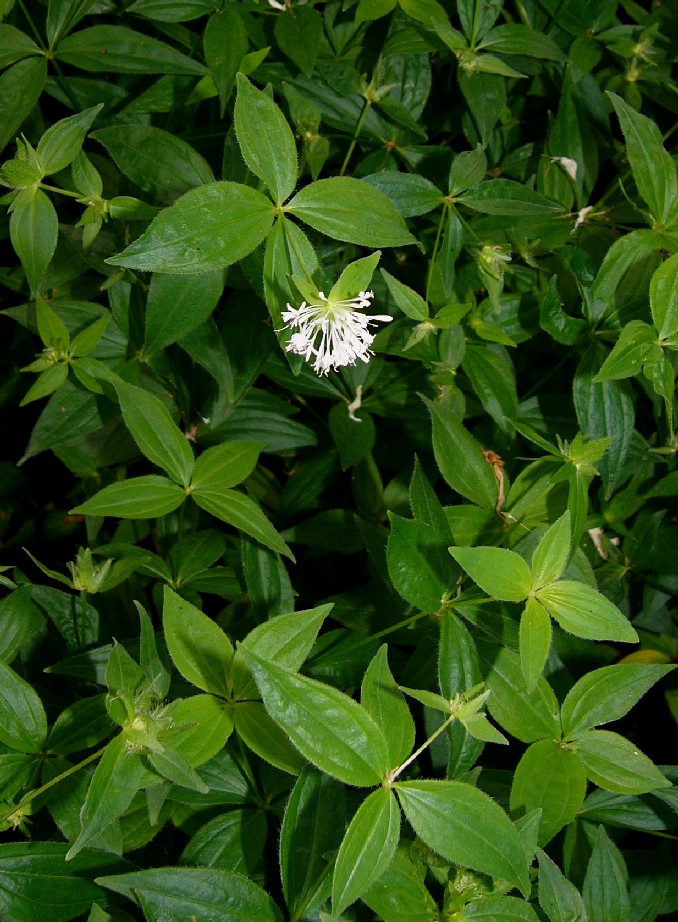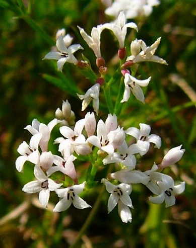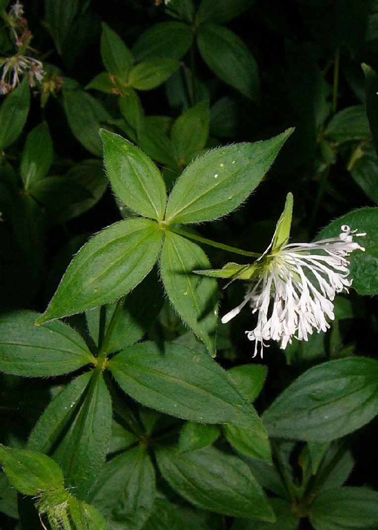3 Blätter eilanzettlich, 3- nervig, zu 4 im Wirtel, Blüten röhrenförmig