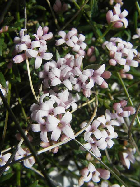 Blüten röhrenförmig, mit 4 Kronzipfeln, weiß, blassgelblich oder