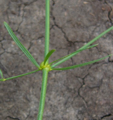 Mittlere und obere Blätter linealisch, 1-nervig, meist zu 4, länger oder so lang wie die Stängelglieder, untere Stängelblätter lanzettlich, zur Blüte oft abgestorben