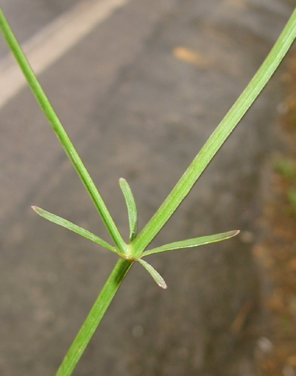 Stängel vierkantig, kahl, Blätter immer zu 4, quirlig, meist bald abfallend