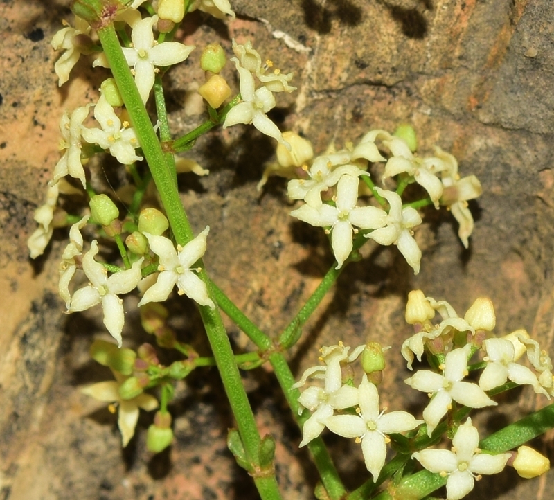 Galium - Sträucher, Blüten weiß, Blätter zu 4 im Quirl, Adern undeutlich, Hypanthium und Früchte kahl