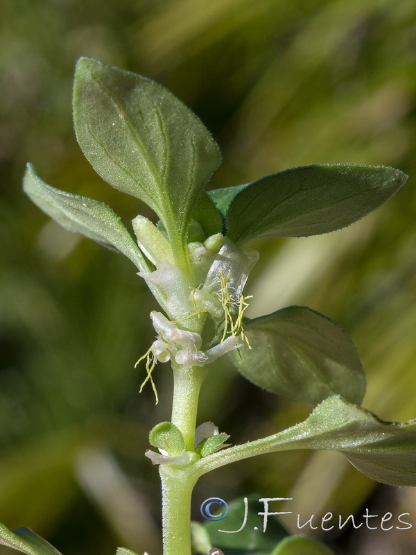 wechselständig, eiförmig, gestielt, Blüten winzig, einhäusig getrenntgeschlechtlich > Theligonum cynocrambe