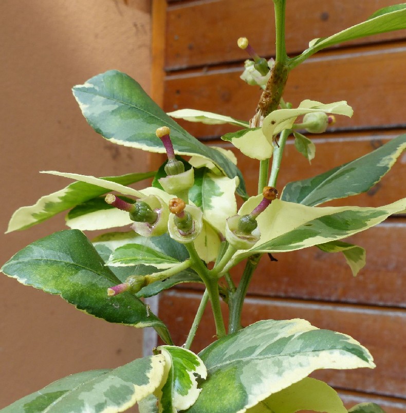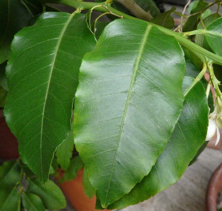 - Citrus medica „Diamante“: - 'Variegato Sara': Blätter mit weißem Rand