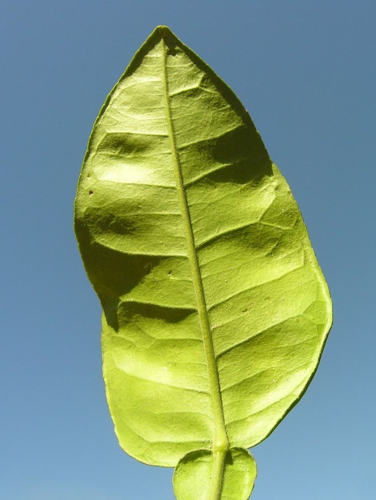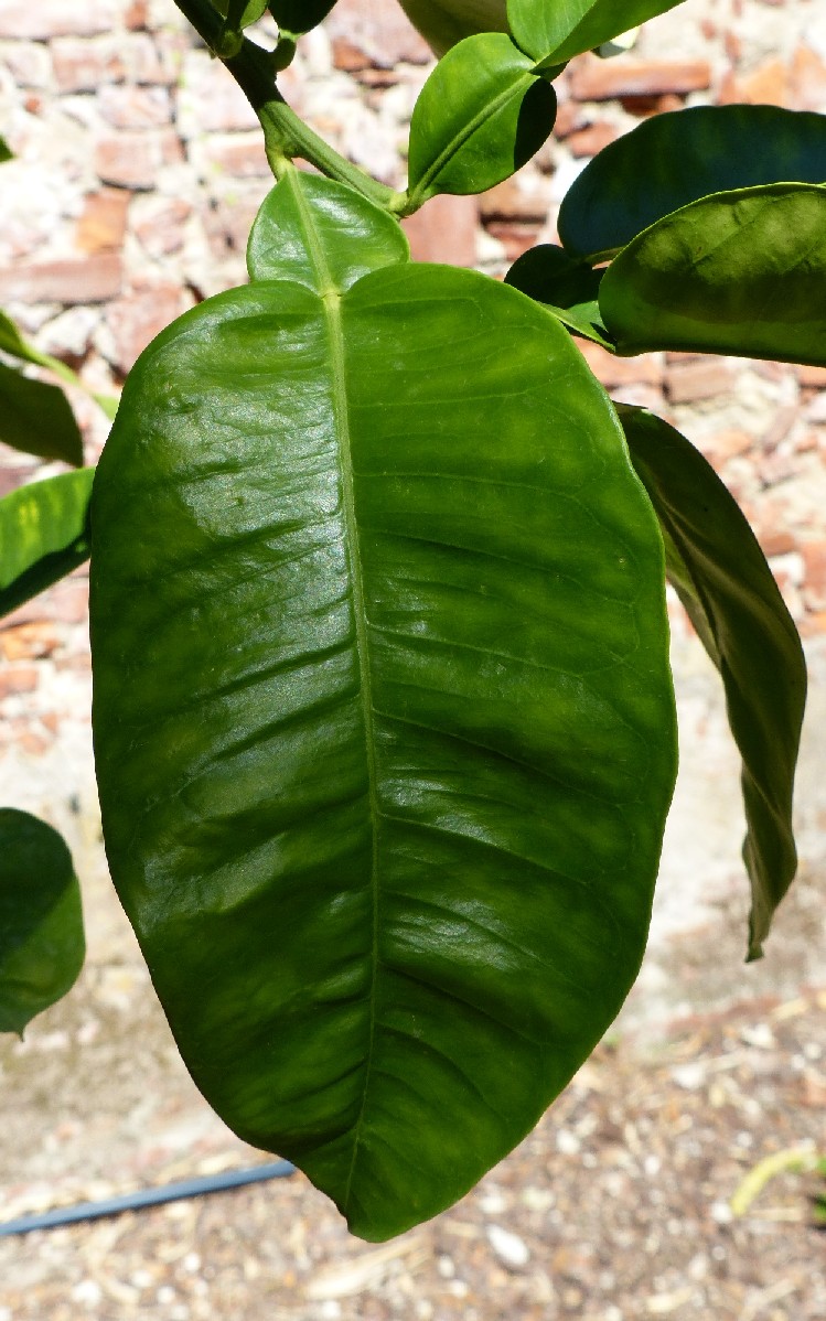 Blätter oberseits dunkelgrün, bis zu 15 cm lang, dünn