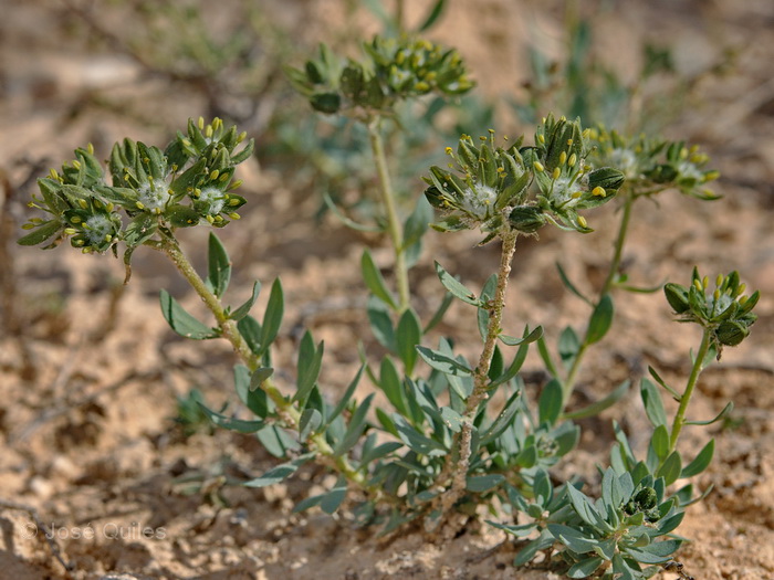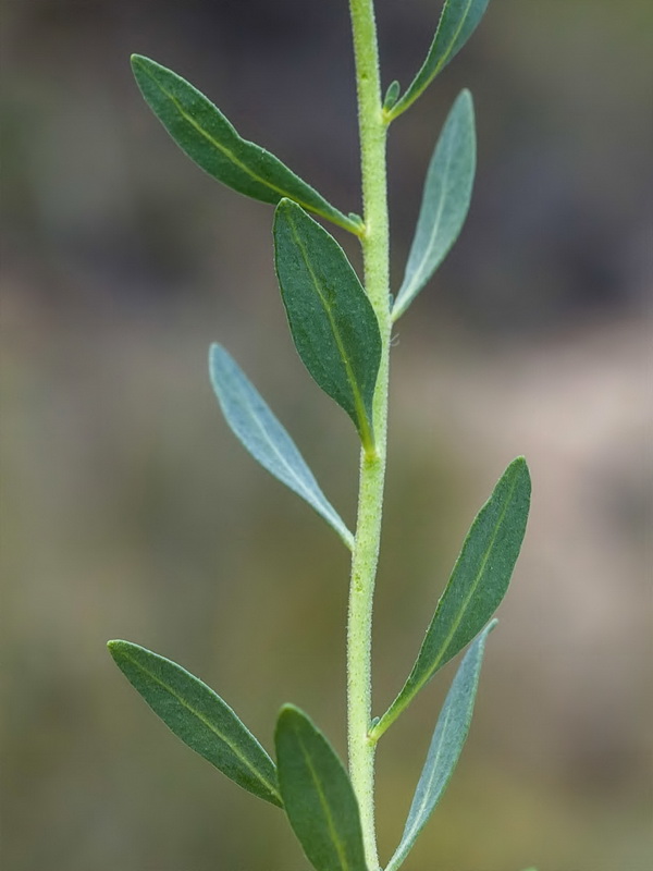 Blätter blaugrün, lanzettlich, ungeteilt, 13 - 14 mm lang, 2 - 7 mm breit