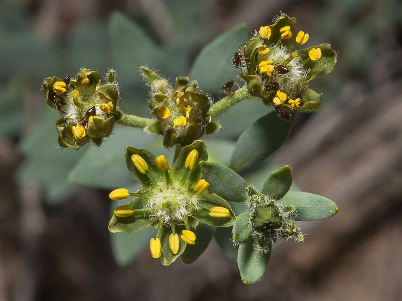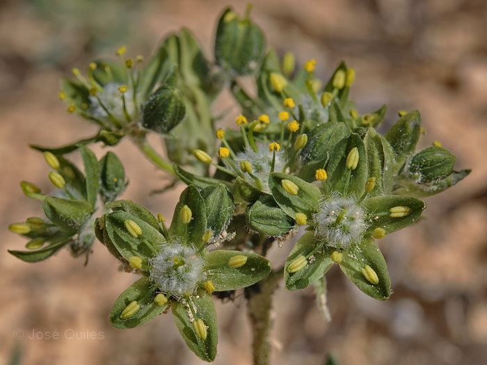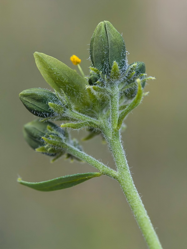 Stängel, Blütenstände und Außenseite der Blüten behaart,