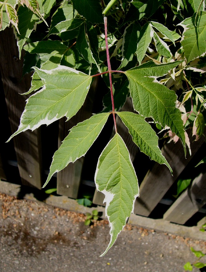 Im Handel sind mehrere Formen mit panaschierten Blätter z.B. Silber-Eschenahorn (Acer negundo 'Variegatum') Borke graubraun, längsrissig, Triebe bereift
