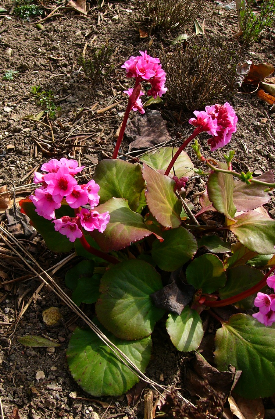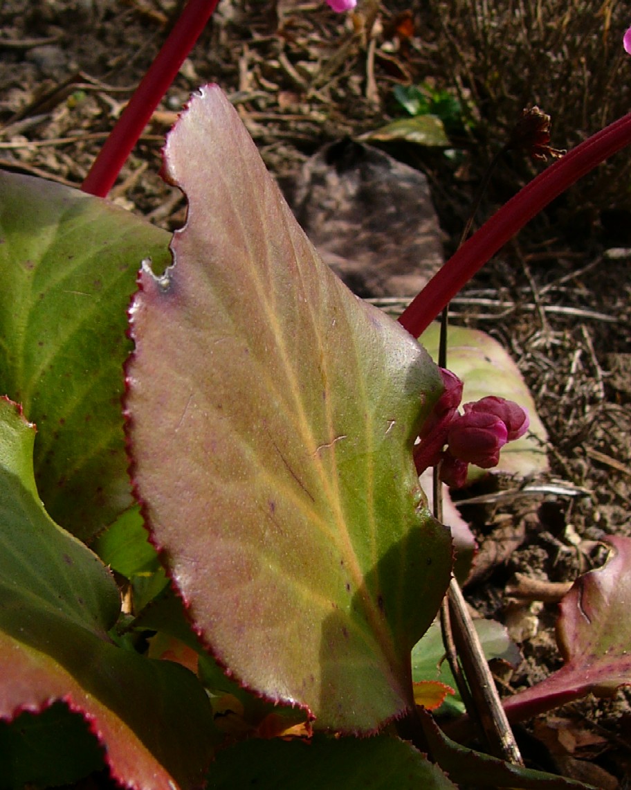 Bergenia cordifolia bildet Hybriden mit Bergenia crassifolia, Bergenia purpurascens und Bergenia ciliata.