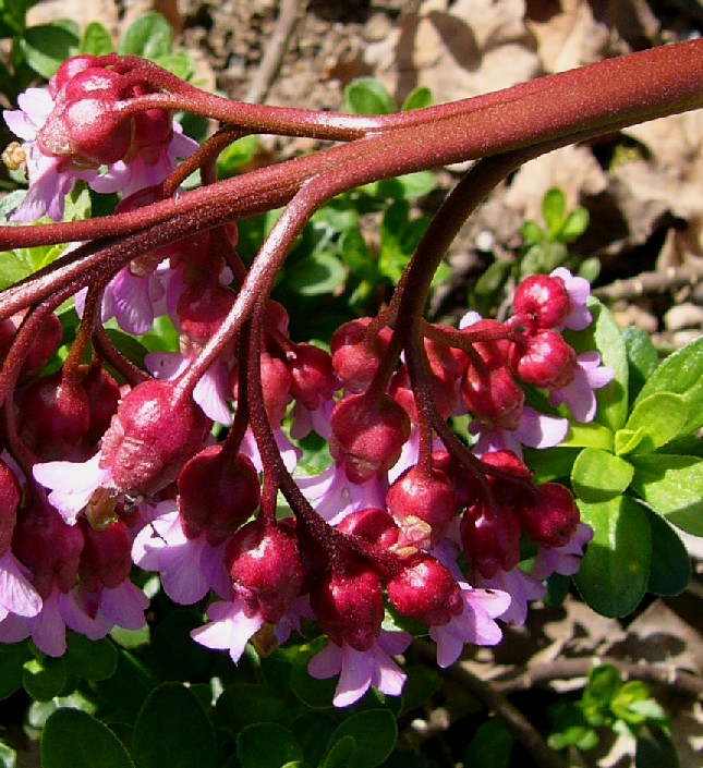Blütenschaft, Blütenstandsäste und Kelchblätter hellrot, spärlich drüsig
