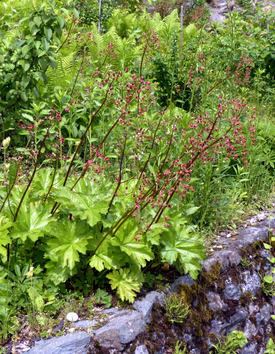Blätter schildförmig, kreisrund, 20 bis 45 cm im