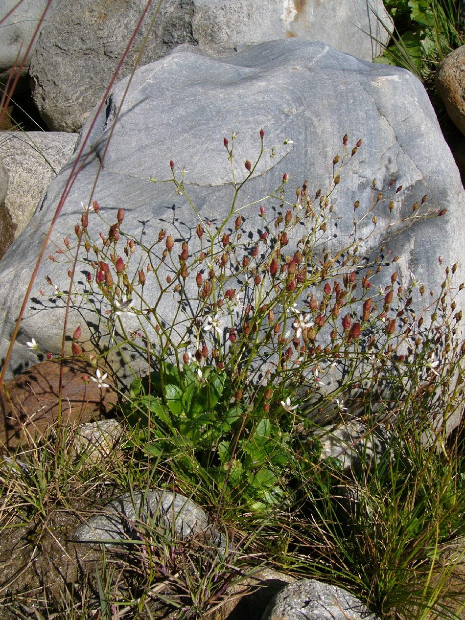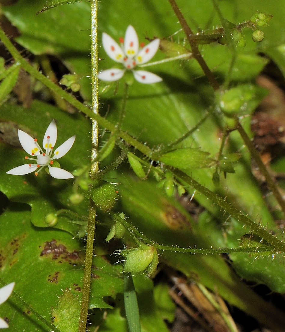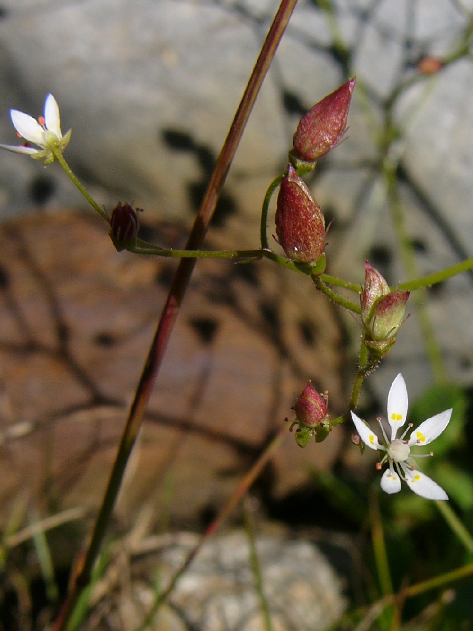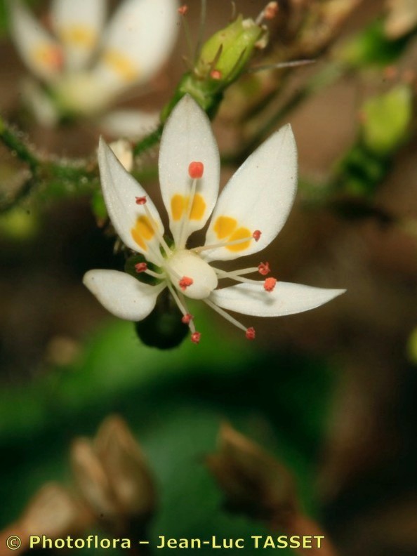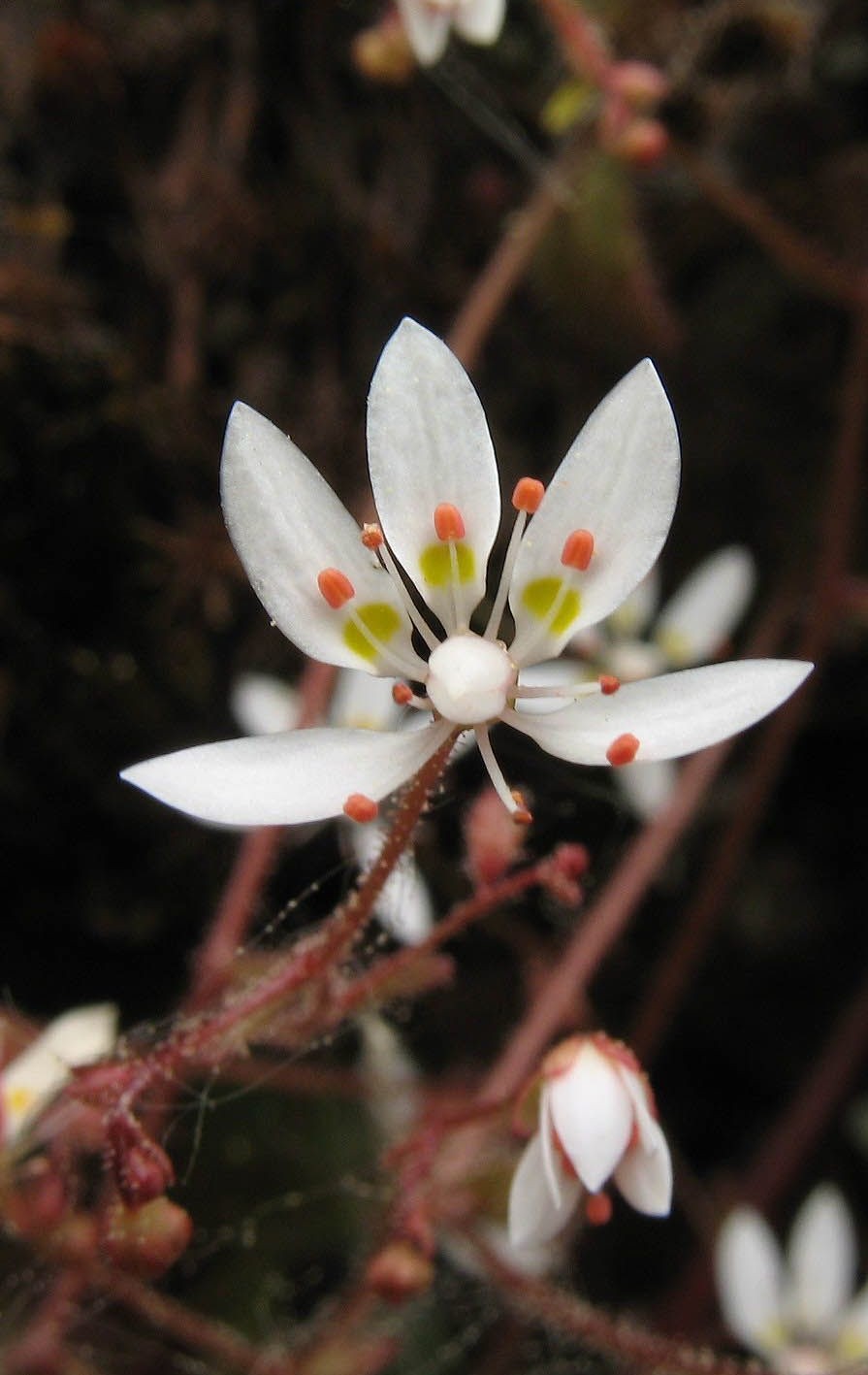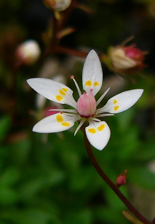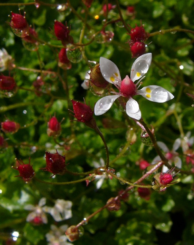 Micranthes - Blüten in lockeren Rispen, Kronblätter weiß mit 2 gelben Punkten