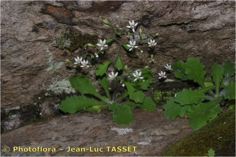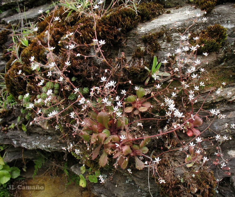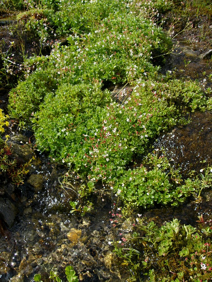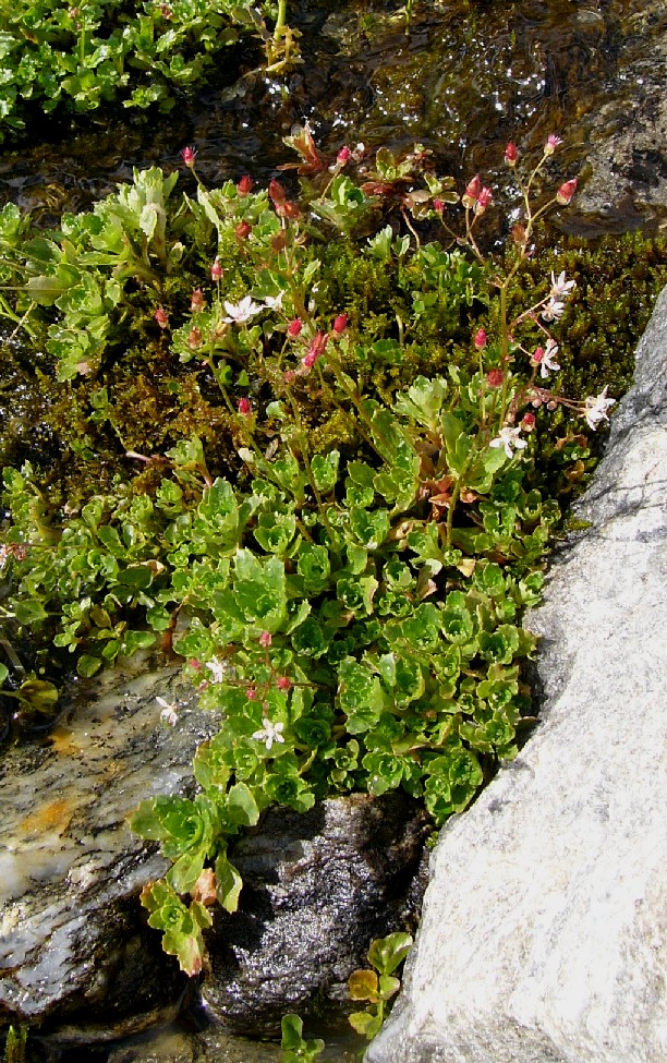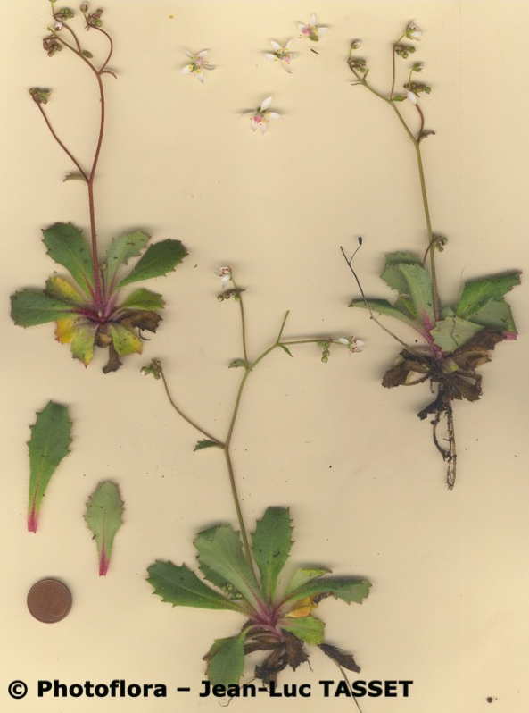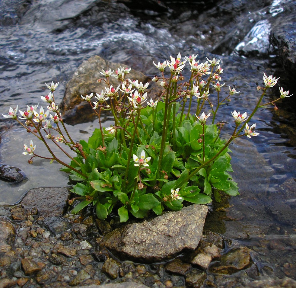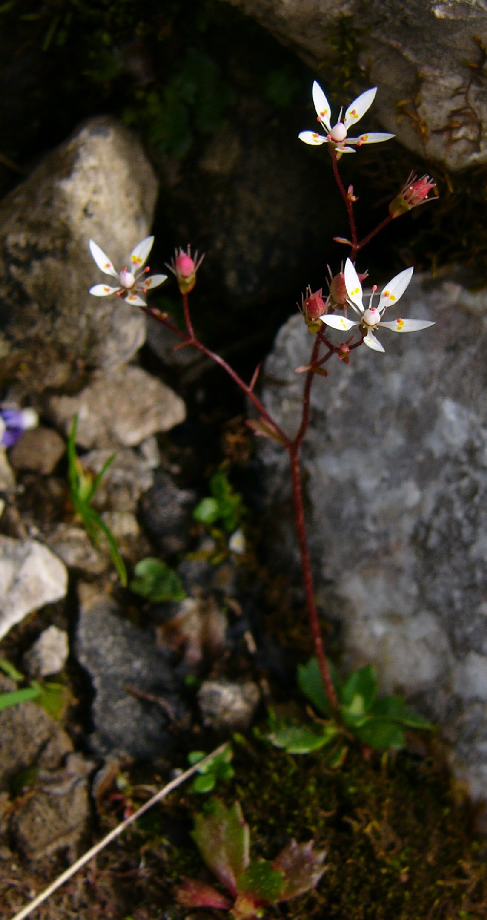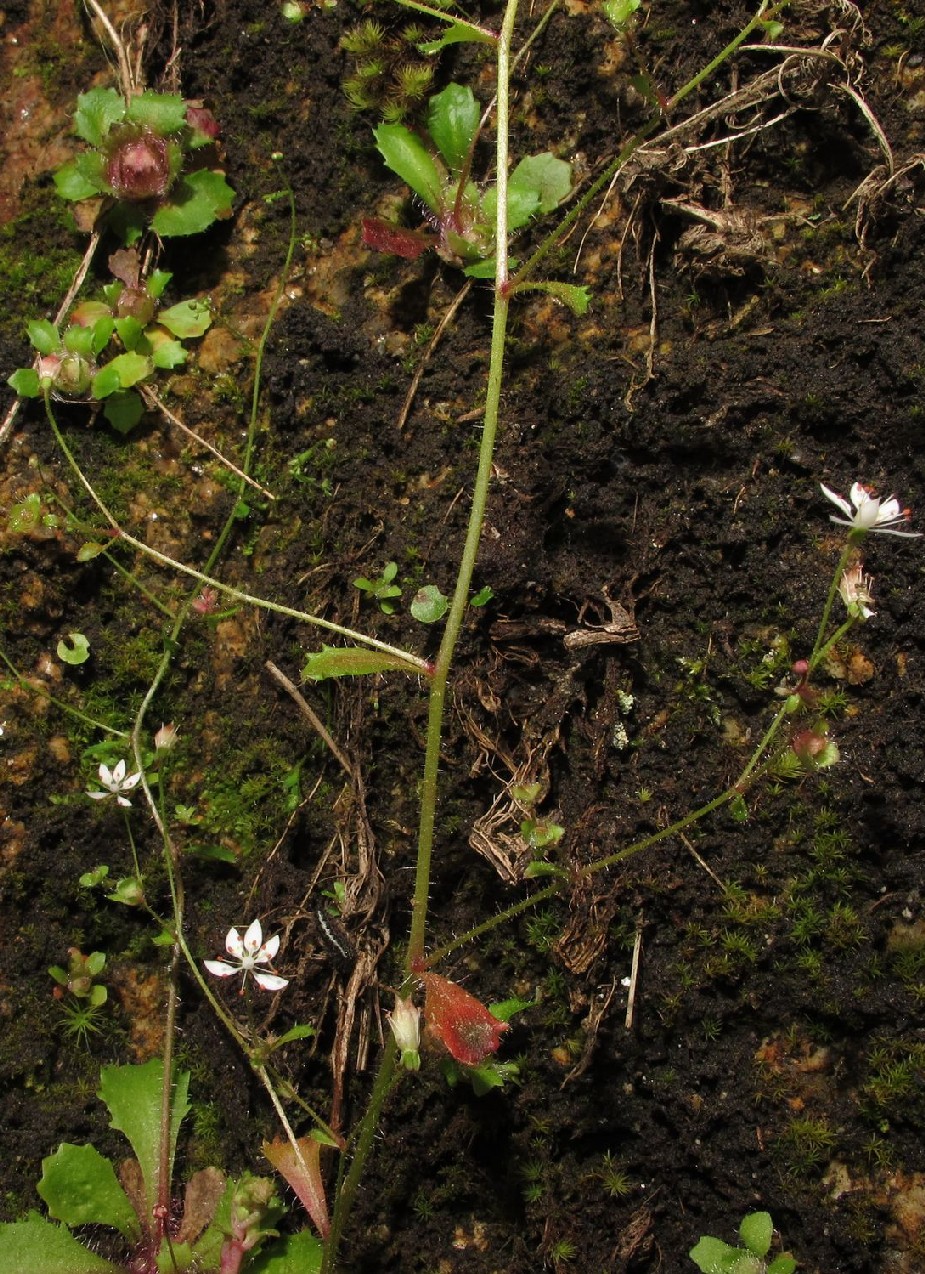 Micranthes - Blüten in lockeren Rispen, Kronblätter weiß mit 2 gelben Punkten