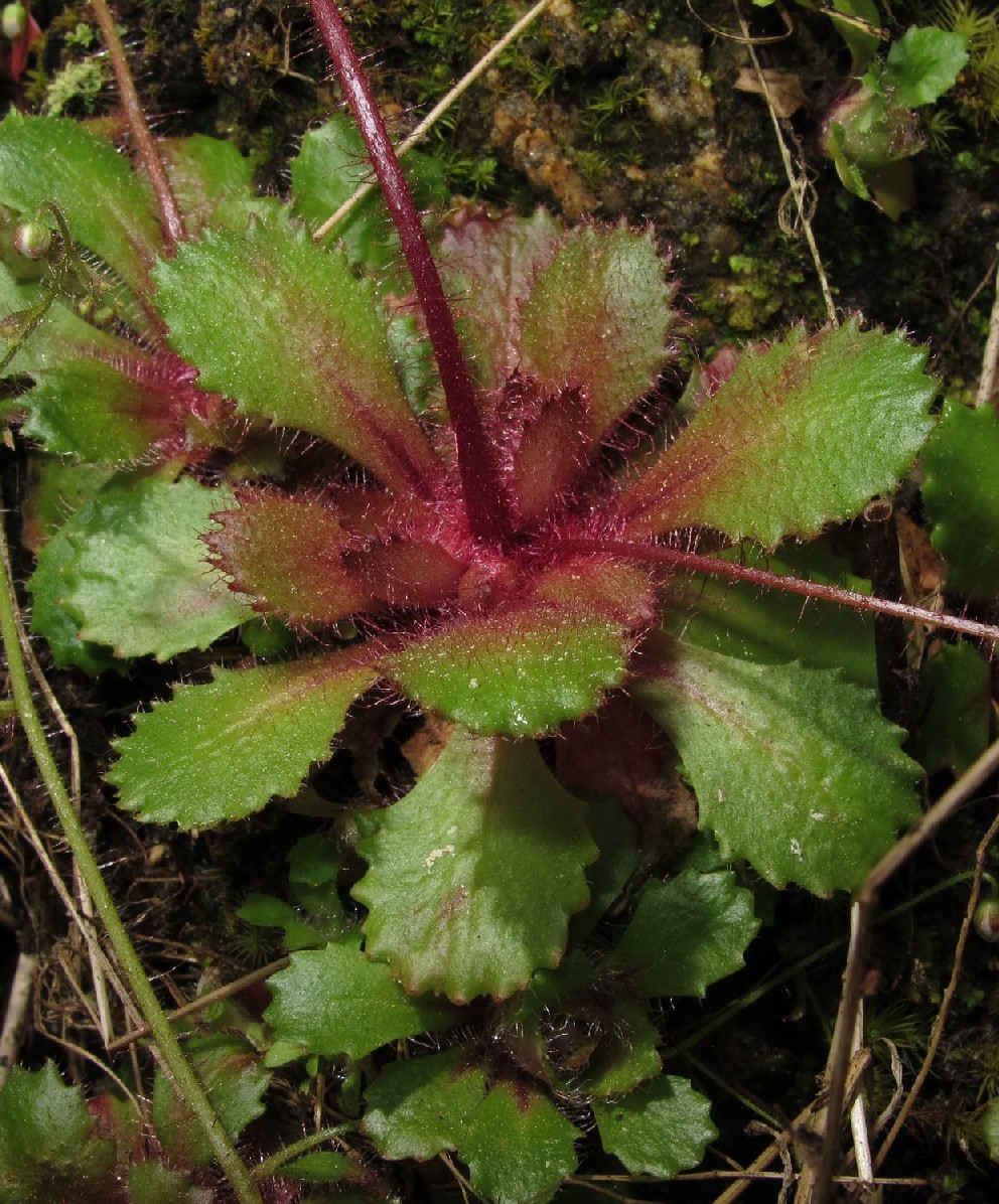 2 Blüten radiär, Grundblätter mit 3 - 7 Zähnen, meist spärlich behaaart