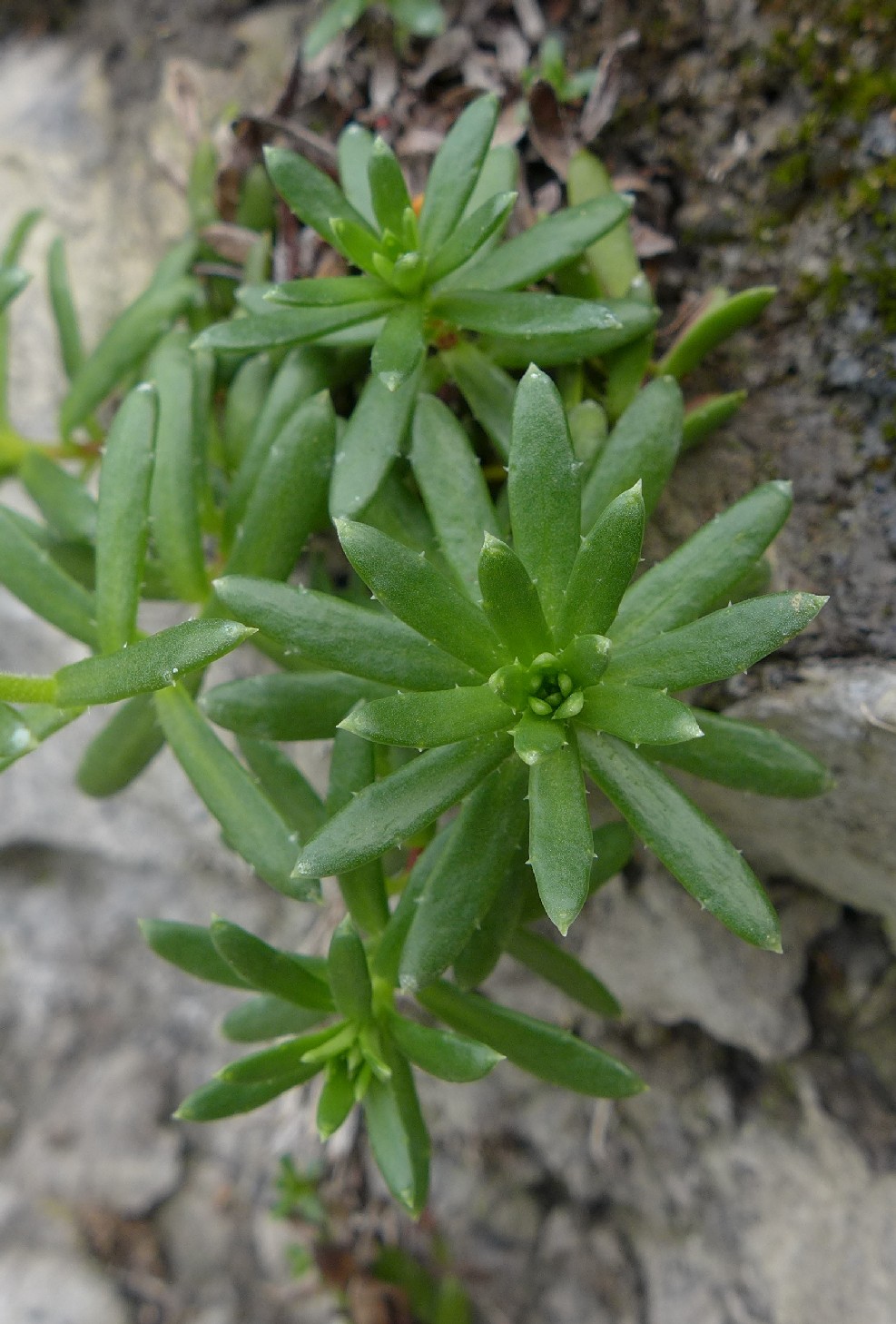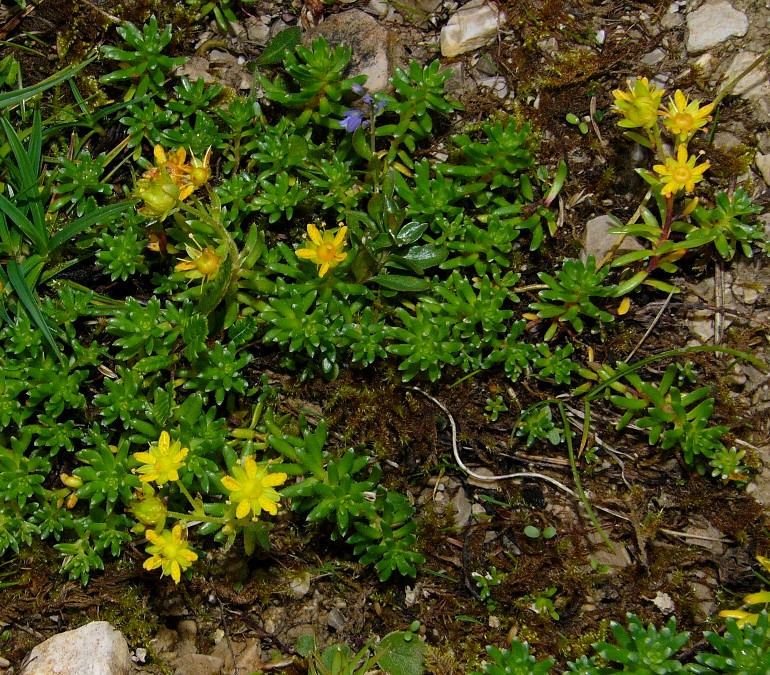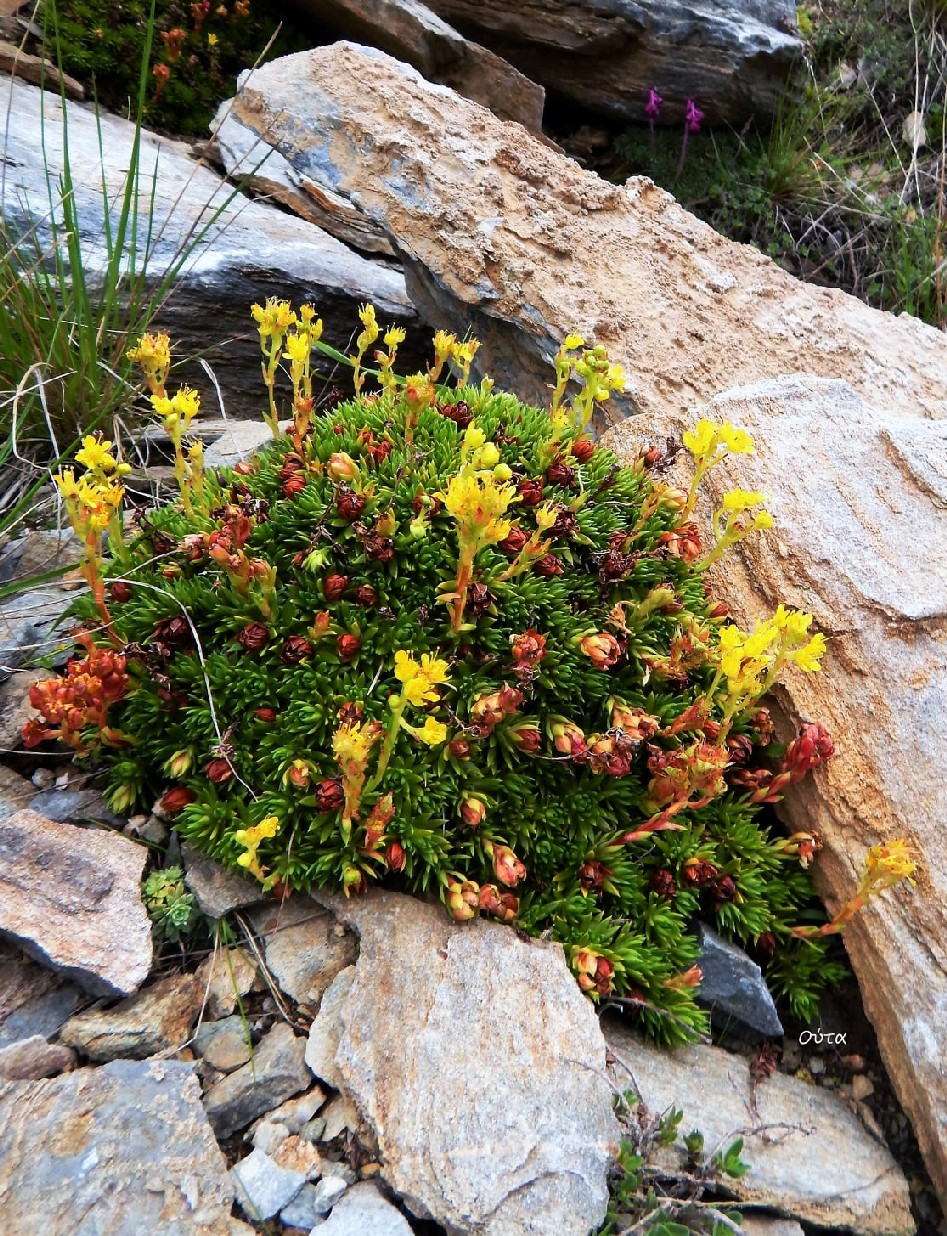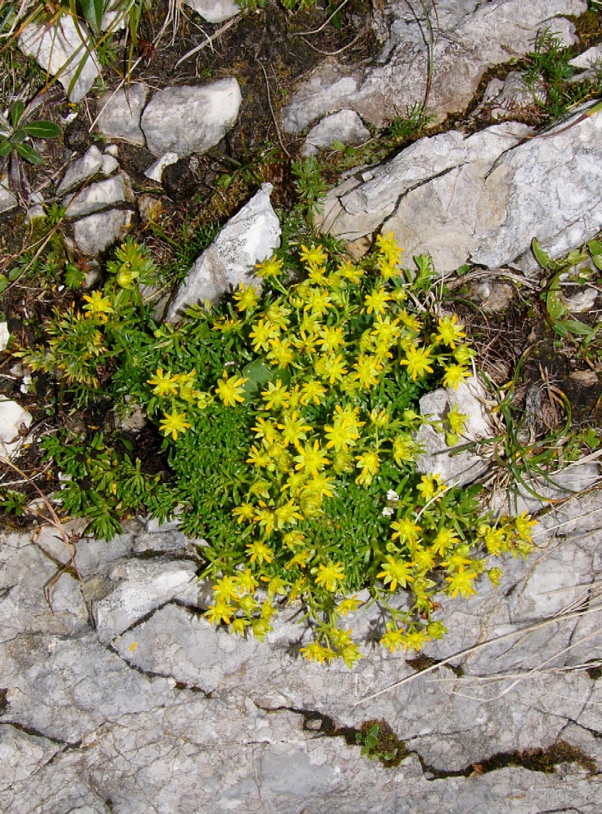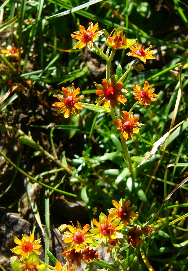 Steinbrech - Blüten zu 2 - 10, dottergelb oder orange, lockere Polster bildend, Blätter linealisch, stachelspitzig