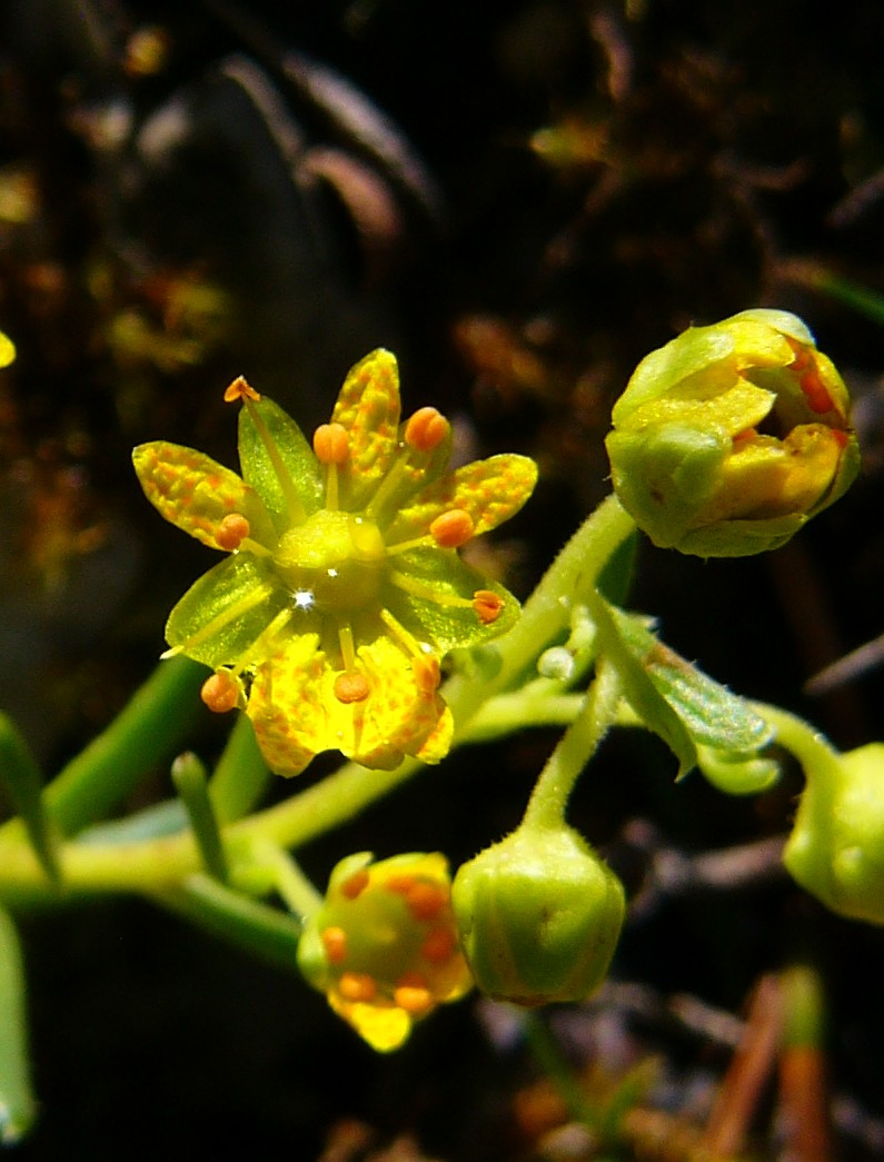 | Blätter weich, fleischig Kronblätter schmal, nicht überlappend, gelb oder orange, Fruchtknoten oberständig > 1