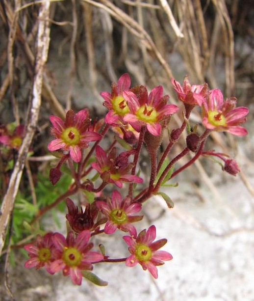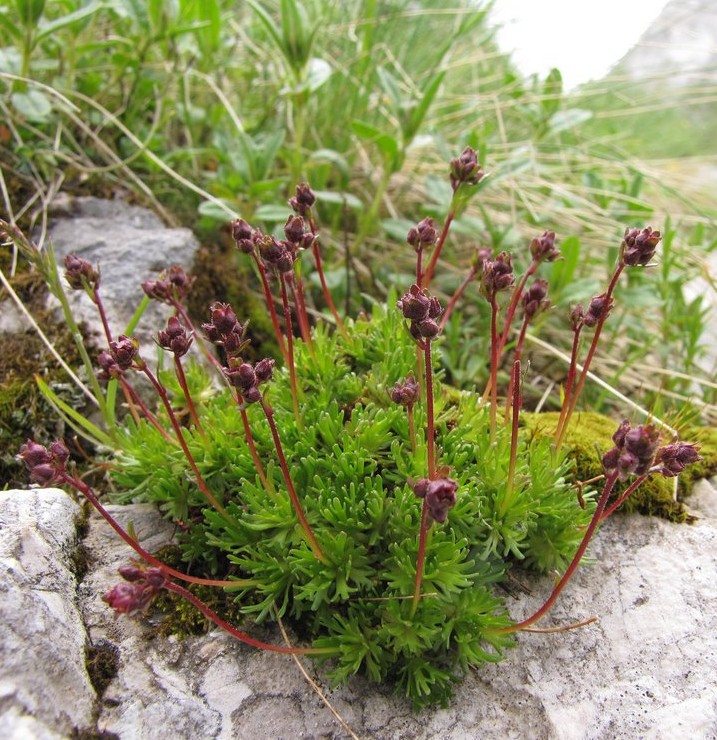 Saxifraga exarata ssp atropurpurea gehört zu Artengruppe Saxifraga exarata agg.