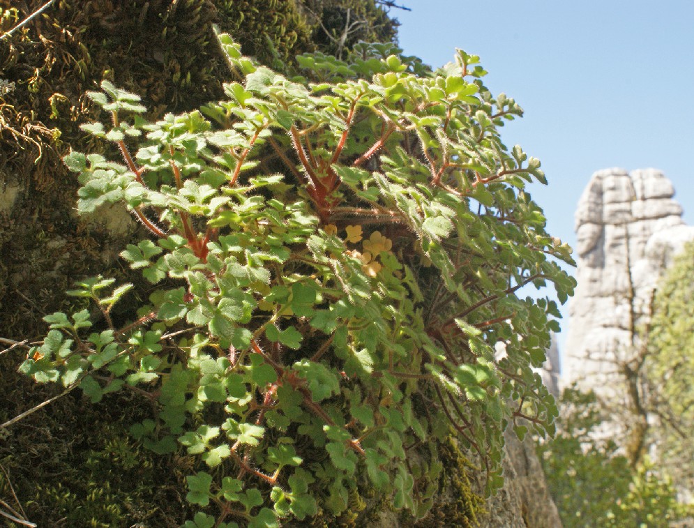Grundblätter 2- fach dreiteilig, mit langen Drüsenhaaren