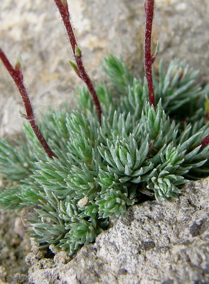 Grundblätter linealisch, 5 - 14 mm lang, hart, mit kalkausscheidenden