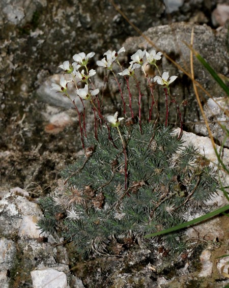 VI - VIII, Felsspalten, Felsrasen (800 - 2000 m) Synonyme: English name: Nome italiano: Verbreitung in Deutschland: Gefährdung in Deutschland: Weltweite Verbreitung: Etymologie: Saxifraga burseriana kommt östlich einer gedachten Linie von Berchtesgaden bis Meduno (Italien) vor.