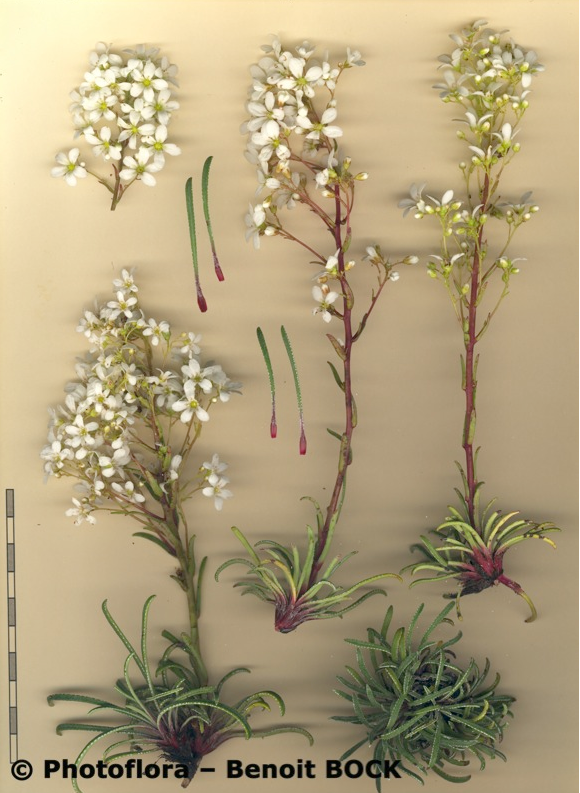 eine hybridogen entstandene Art Saxifraga cochlearis x Saxifraga callosa.