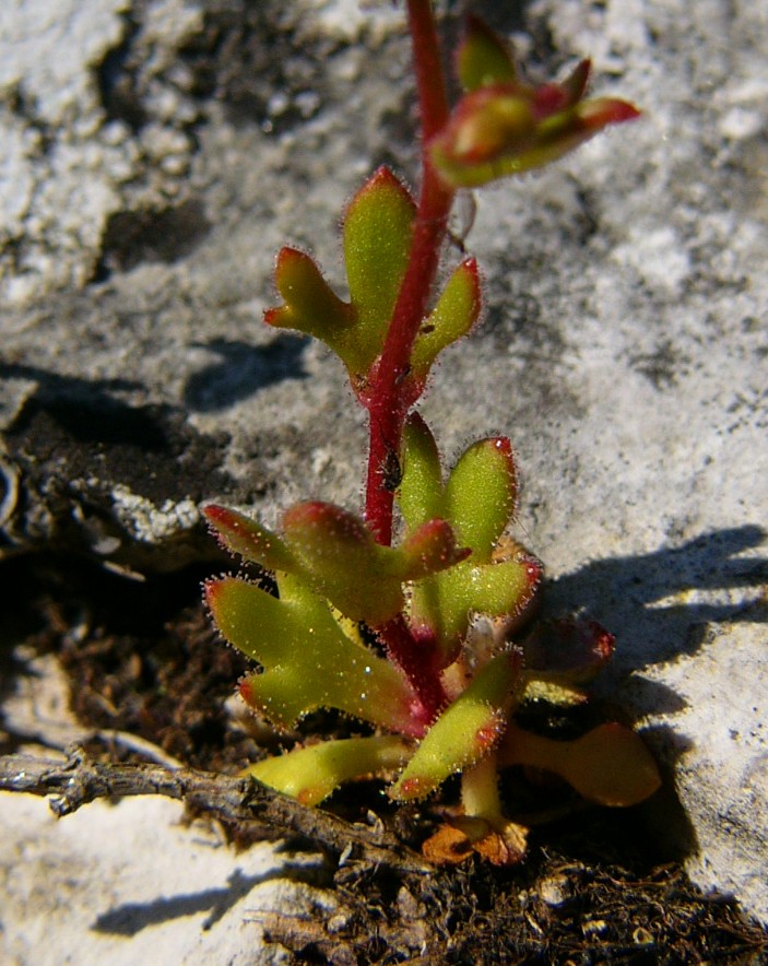 | Endemit in Südspanien In den Achseln der Grundblätter befinden sich unterirdische Bulbillen Stängel und Blütenstiele schlank, Kronblätter 5 - 7 mm lang Grundblattrosette zur Blütezeit vorhanden, alle Blätter dreilappig > 1