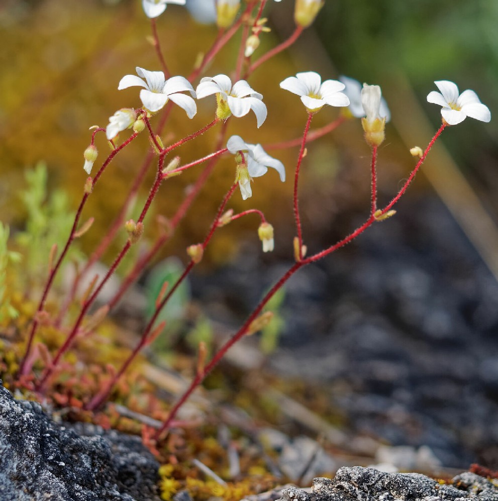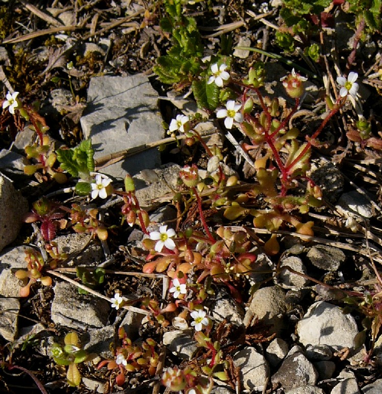 Kronblätter weiß, 2 - 4 mm lang Kelch drüsig, Stängel drüsenhaarig, meist rot