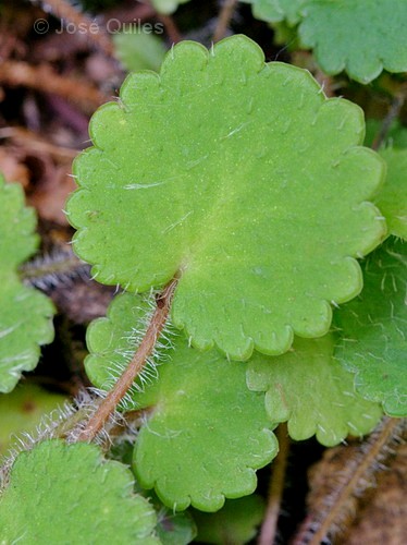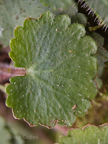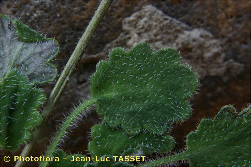 Grundblätter 20 - 90 mm lang, 15 - 40 mm breit, Blattspreite 25 - 35 mm lang 15 - 40 mm breit, mit 13 - 23 Zähnen, am Rand nicht umgebogen, am Grund herzförmig