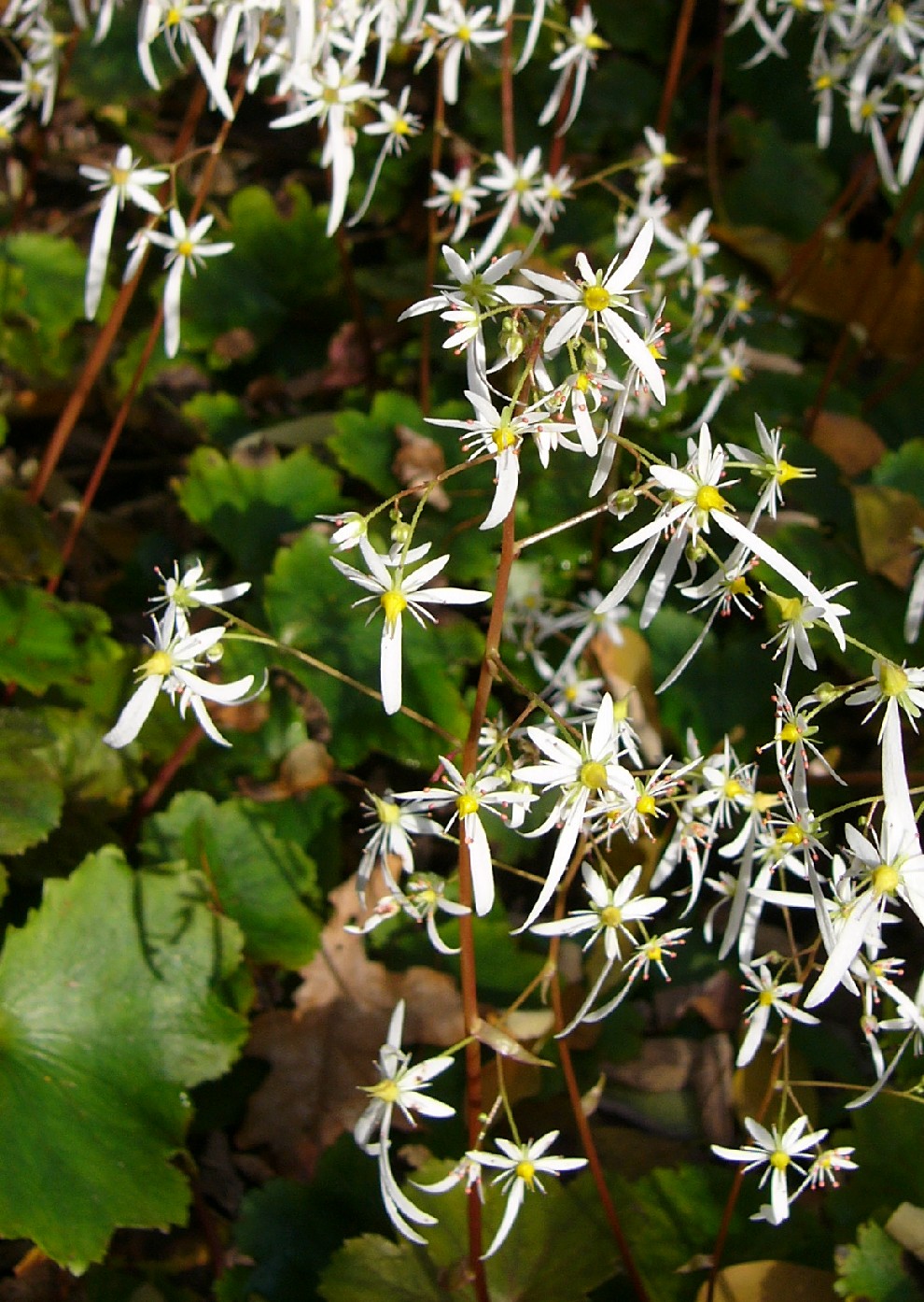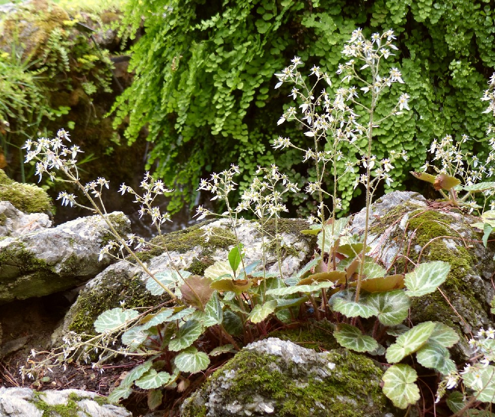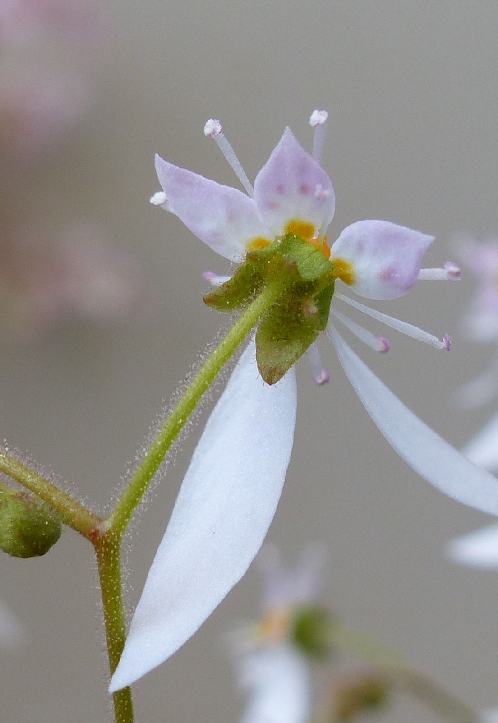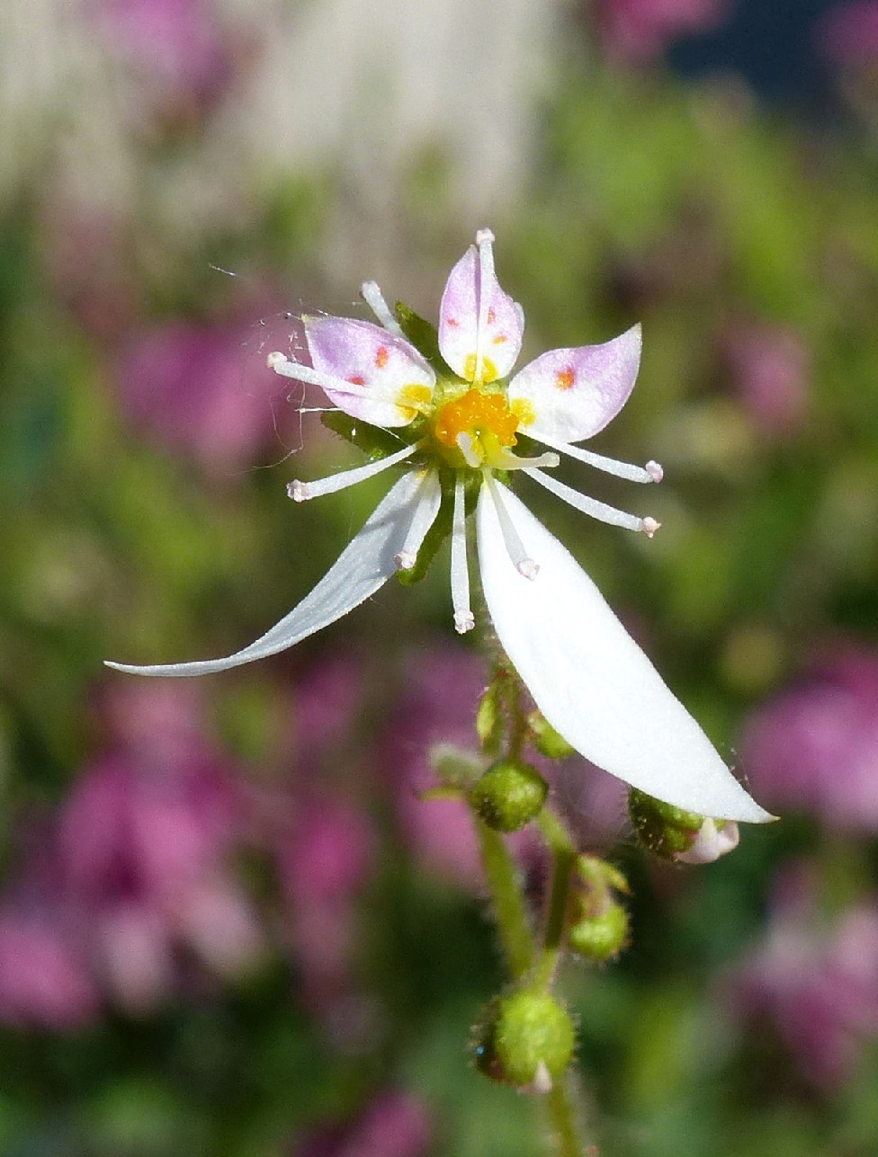 Saxifraga - Blüten weiß, zygomorph, mindestens ein Kronblatt deutlich länger als die übrigen