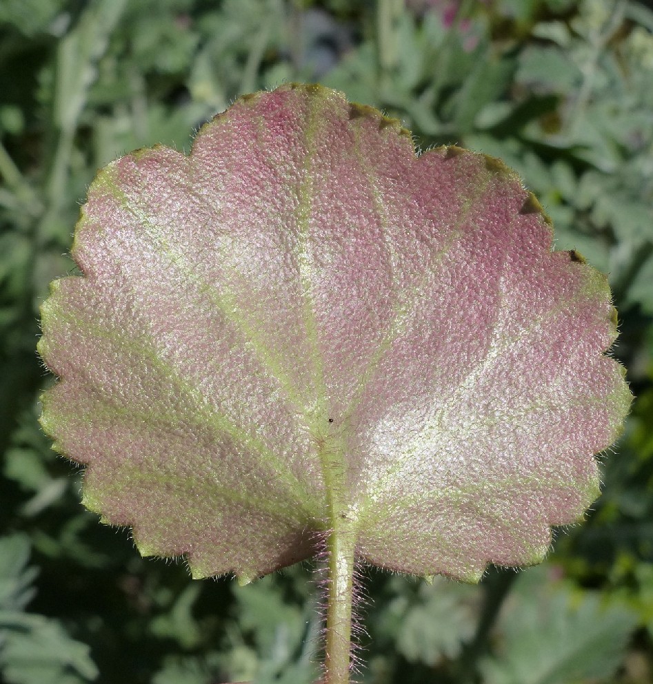 Blätter rundlich nierenförmig, deutlich gekerbt, spärlich behaart