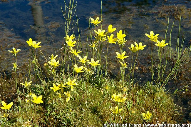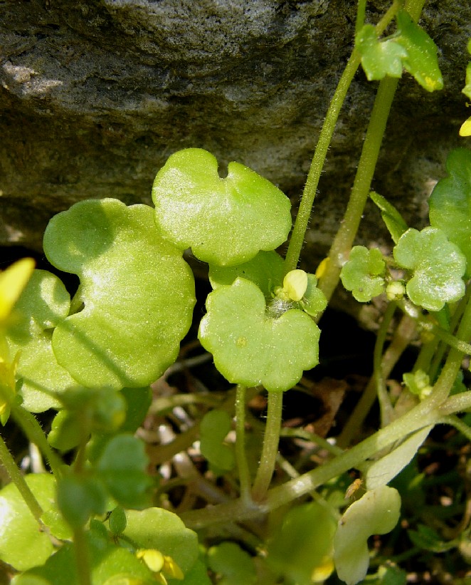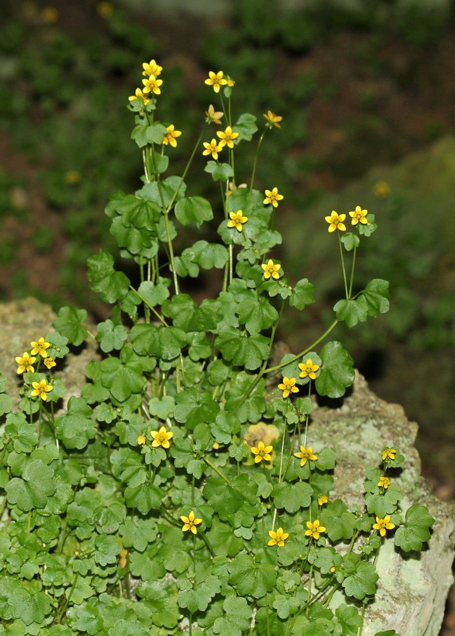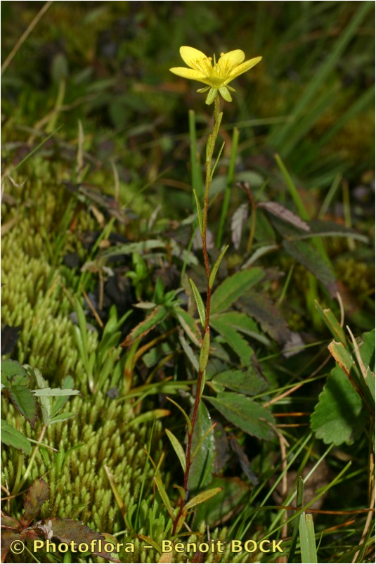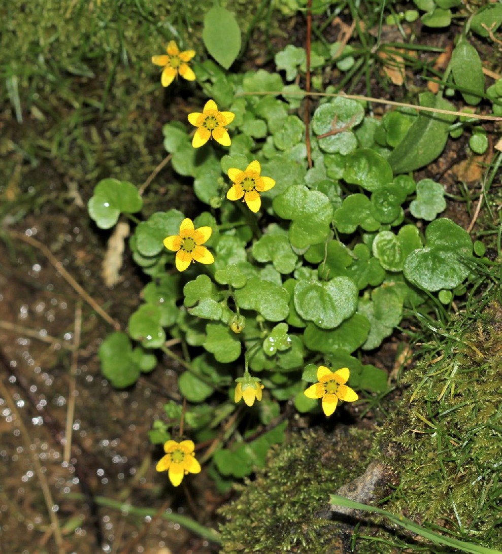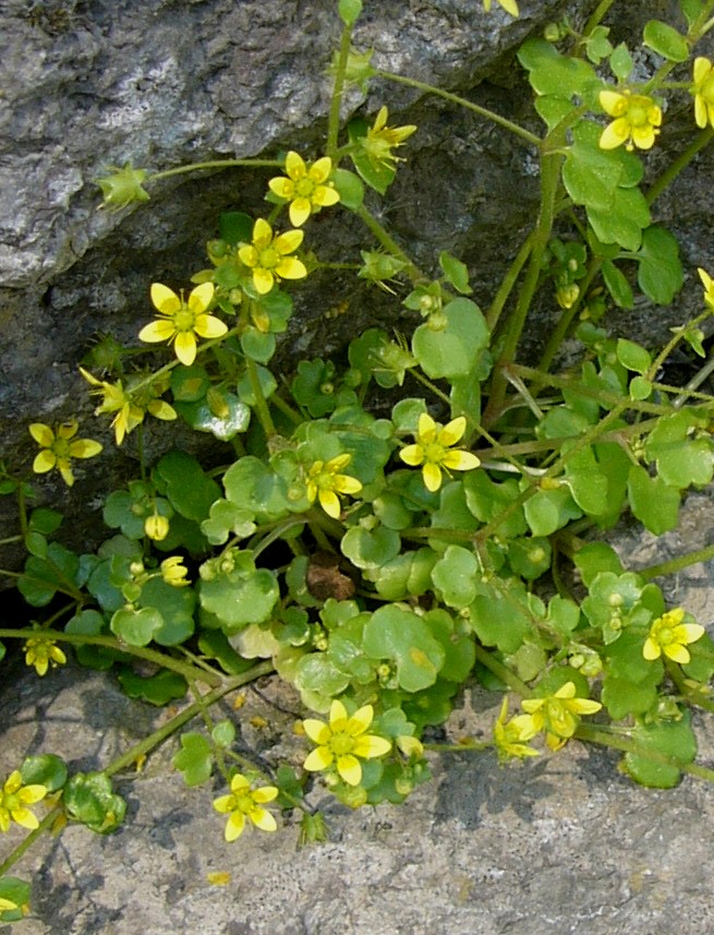 Saxifraga - Blüten gelb, ohne Rosetten oder Polster, Blätter und Stängel kahl oder spärlich kurz drüsenhaarig