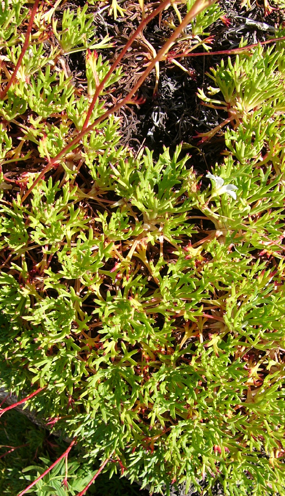 Mittlerer Lappen der Grundblätter linealisch, 4 - 6 mm lang, 0,5 - 1 mm breit, 3 - 6 mal so lang wie breit, oberseits mit 1 feinen Furche, Blattlappen mit Spitzchen, Blattstiel ca. so lang wie die Blattspreite, 1 mm breit, gefurcht
