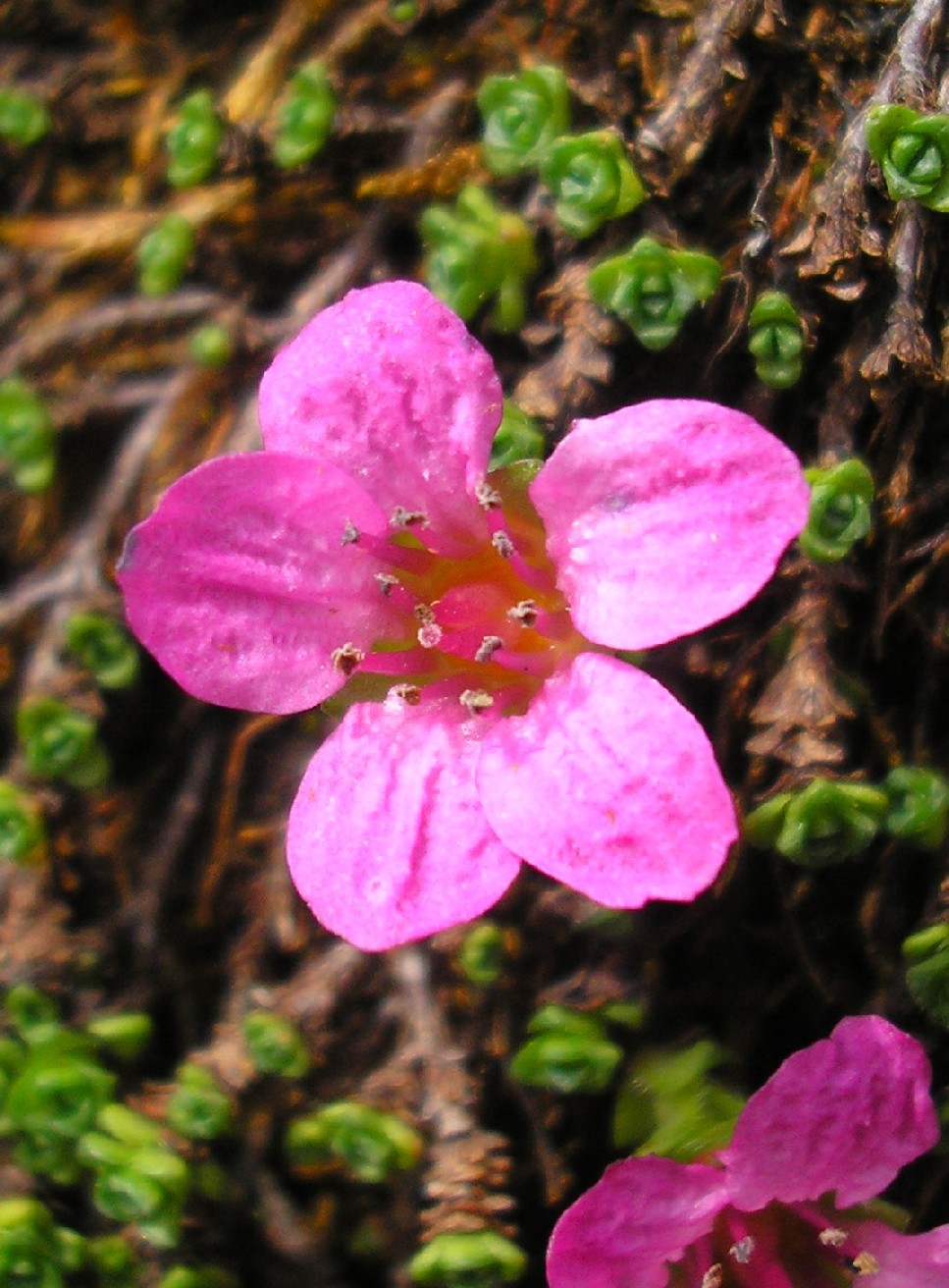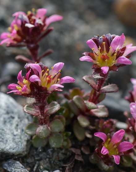 VII - VIII, Hochalpine Steinschuttfluren (2100 - 3000 m) Hybride Saxifraga oppositifolia x Saxifraga biflora Synonyme: English name: Nom francais: Nome italiano: Verbreitung in Deutschland: Gefährdung in Deutschland: Weltweite Verbreitung: Etymologie: