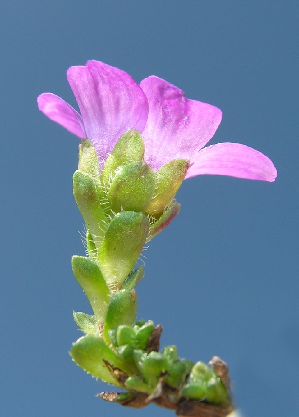 | Blüten rot, rosa, violett oder weiß Kronblätter 3- nervig, schmaler als 2 mm, nicht überlappend > 1