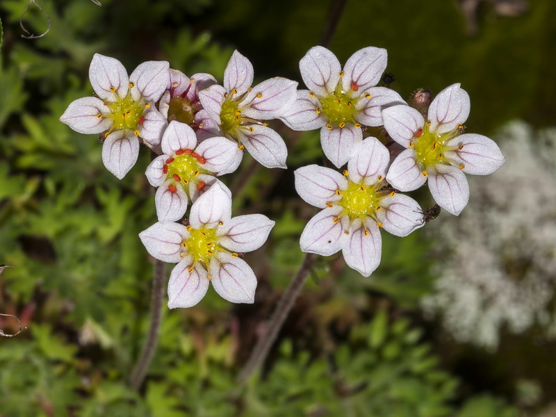 1 Pflanze ohne Sommerknospen, Blütenstand mit 3 - 8 Blüten, Blüten mit roten oder gelben Antheren