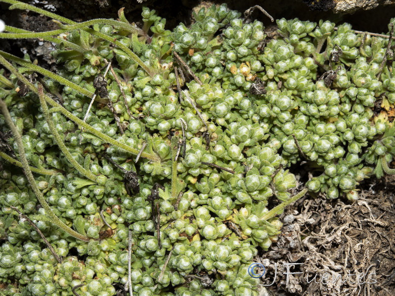 Grundblätter rosettig, 3 - 8 mm lang, 1 - 2 mm breit, aufrecht, ganzrandig, spatelförmig, ungestielt, drüsig behaart, vorne stumpf