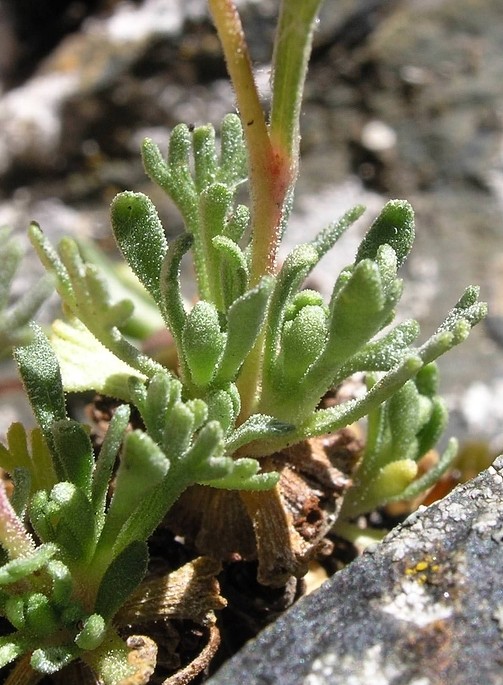 Grundblätter rosettig, 7 - 10 mm lang, 3 - 5 mm