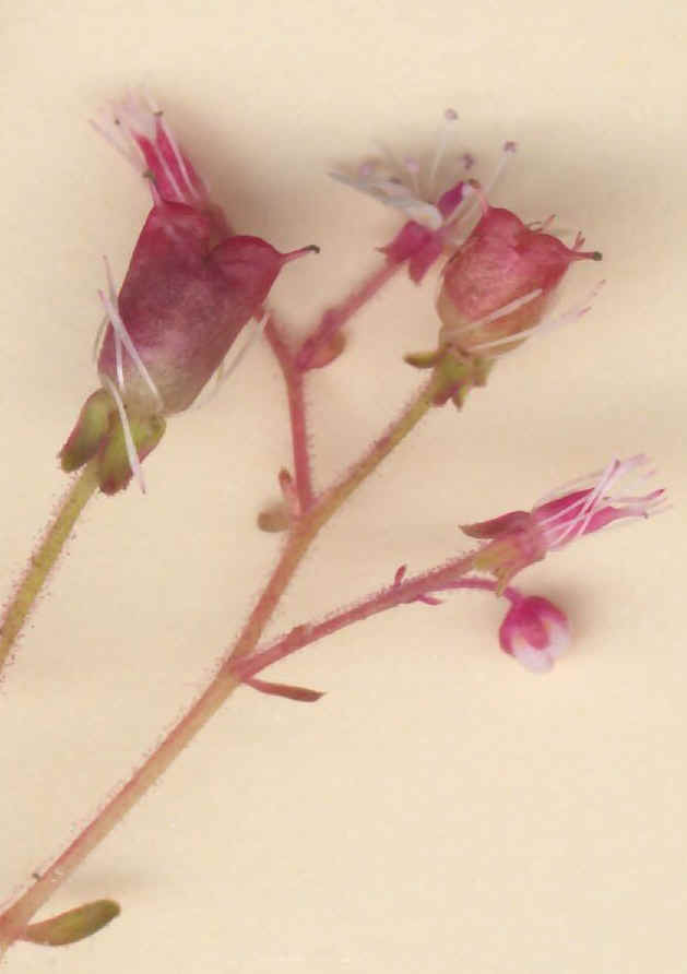 Steinbrech - Blüten weiß, mit roten und gelben Punkten, Blätter weich, rundlich, nicht kalkausscheidend
