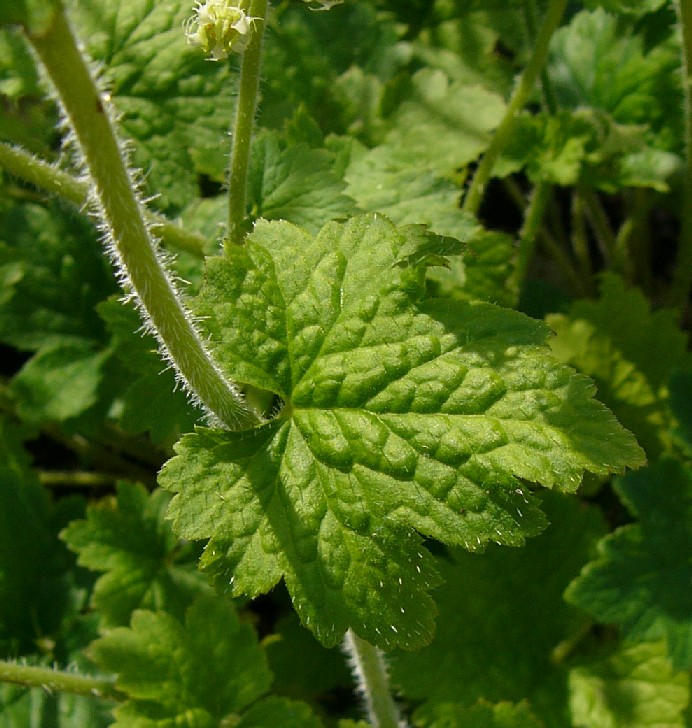 Früchte 7 - 8,5 mm lang, mit 100 bis 150 Samen Stängel behaart, mit 2 - 3 wechselständigen Laubblättern, Stängelblätter gelappt, behaart