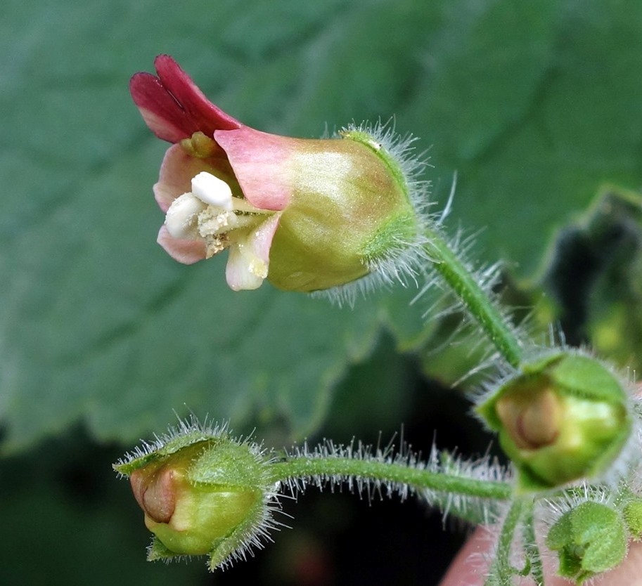 Blätter behaart, Blüten rötlich, Staminodium breit, Blätter ungeteilt,