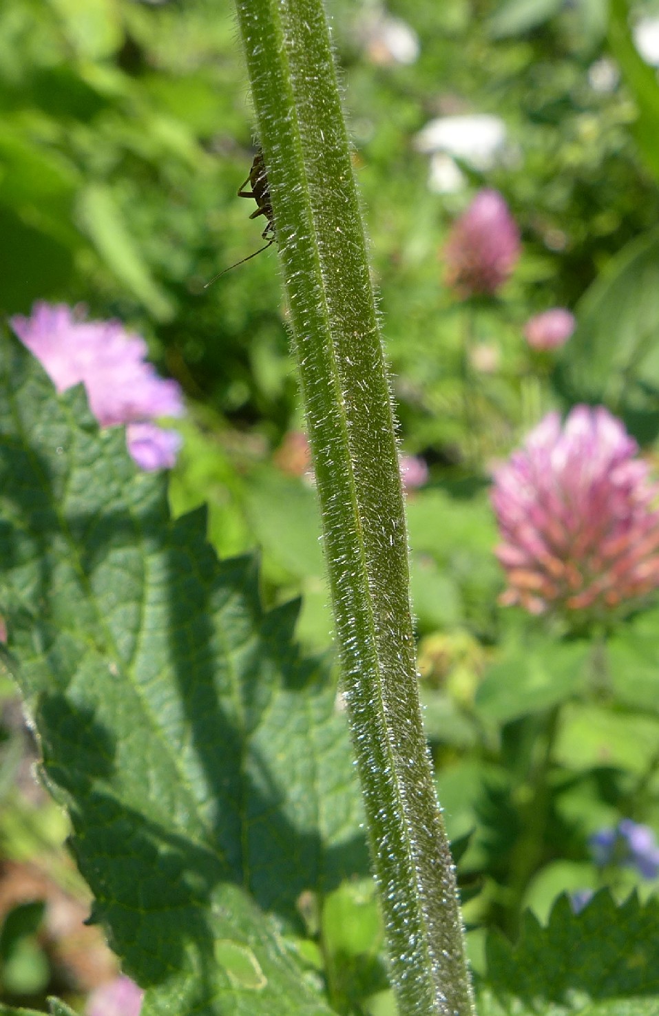 Stängel ungeflügelt, 4-kantig, mit langen, abstehenden Haaren